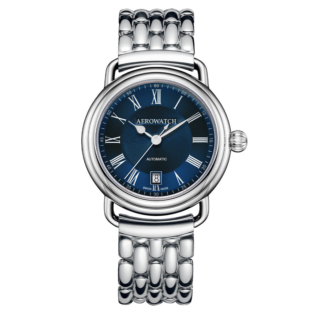 Design retro przyciąga uwagę od pierwszego spojrzenia, wywołując uczucie nostalgii i szacunku dla historii zegarmistrzostwa. Stalowa bransoleta nadaje zegarkowi Aerowatch 1942 A60900AA29M niepowtarzalny charakter, podkreślając jednocześnie jego wyrafinowanie i solidność. Aktualną godzinę wskazują eleganckie wskazówki i indeksy rzymskie. Funkcjonalność tego modelu zwiększa datownik, który swoje miejsce znalazł na godzinie szóstej — wskazuje on aktualny dzień miesiąca. Niebieski cyferblat przykryty został najwyższej jakości szkłem szafirowym.