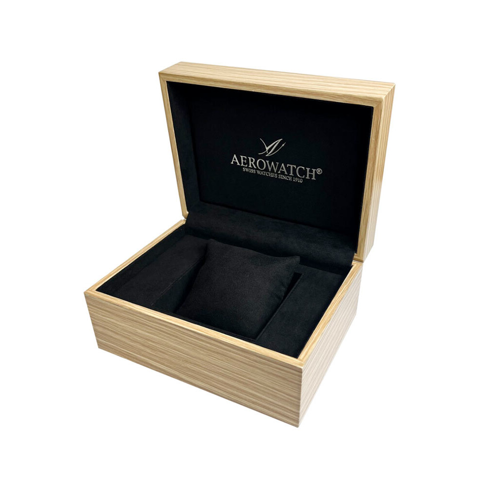 Zegarek Aerowatch o rozmiarze 40 mm wykonany został ze stali szlachetnej w kolorze srebrnym. Jego delikatność detali, połączona z solidnością wykonania, sprawiają, że staje się on nieodłącznym towarzyszem dla pasjonatów zegarków, którzy cenią zarówno precyzję, jak i estetykę. Rewers tego męskiego czasomierza to transparentny dekiel, który pozwala podziwiać pracę mechanizmu. Producent swój model uzbroił w szwajcarski mechanizm automatyczny ETA 2824 z rezerwą chodu do 38 godzin. Ten skomplikowany werk to sprawdzony w świecie zegarmistrzowskim układ, który nie zawiedzie swojego właściciela.