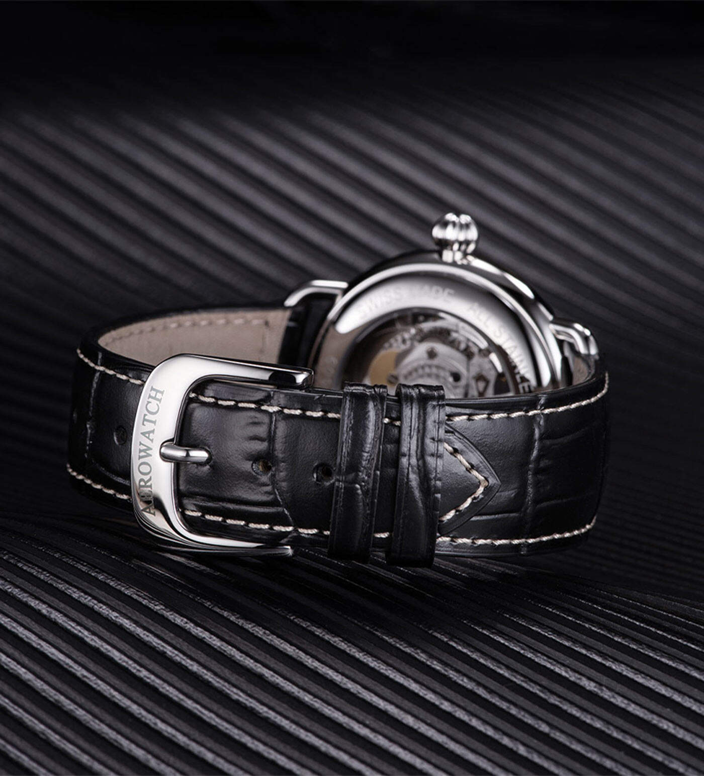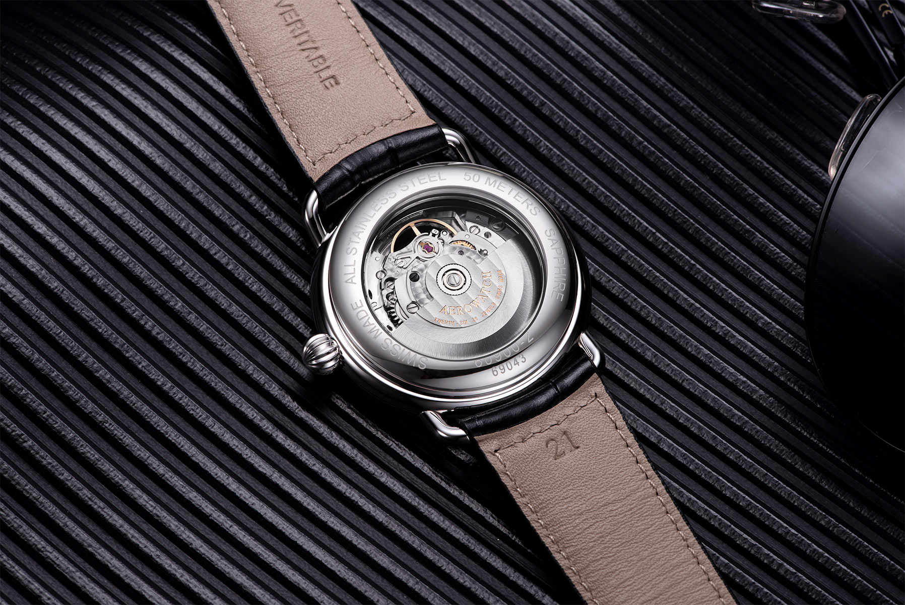 Aerowatch 1942 Automatic to doskonały towarzysz nie tylko w zestawieniu z garniturem, ale również z przeznaczeniem na każdy dzień. Podarowany w prezencie zachwyca perfekcyjnie wykonanymi detalami oraz przeszklonym szafirowym deklem z możliwością obserwacji pracy mechanizmu. Kto by przecież skrywał małe, ale jednocześnie wielkie dzieło sztuki zegarmistrzów AEROWATCH.