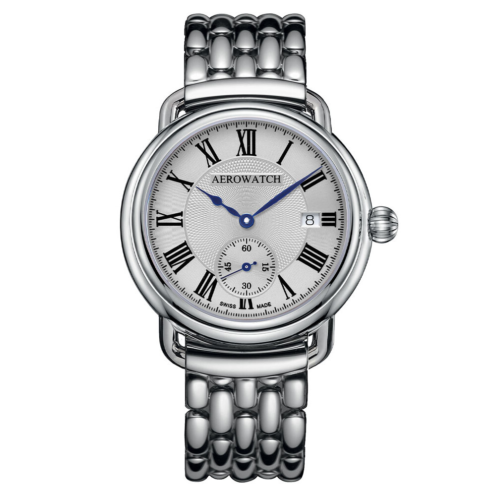 Na godzinie szóstej umieszczony został mały sekundnik, dodając zegarkowi funkcjonalnego elementu oraz nawiązując do tradycyjnego stylu zegarków retro. Wyrafinowane detale sprawiają, że automatyczny zegarek Aerowatch na bransolecie staje się nie tylko narzędziem do mierzenia czasu, lecz także wyjątkowym elementem biżuteryjnym, będącym manifestacją subtelności i elegancji. Szwajcarski mechanizm automatyczny, który napędza ten czasomierz, to gwarancja precyzji, niezawodności i trwałości. To serce tego eleganckiego zegarka, które pracuje zgodnie z najlepszymi tradycjami szwajcarskiego zegarmistrzostwa, nadając mu prestiżu i wartości.