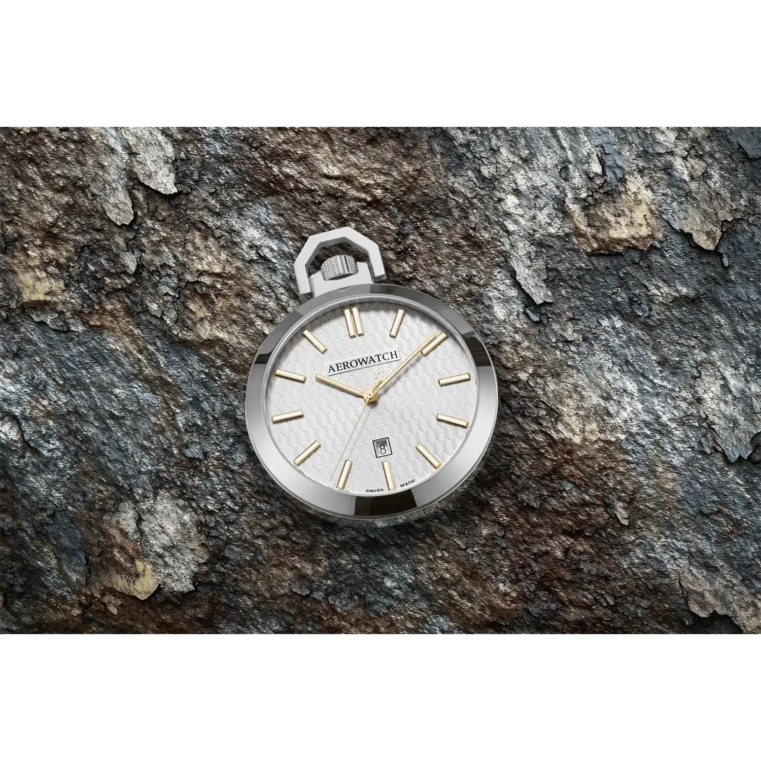 Szkło szafirowe skutecznie chroni tarczę przed zarysowaniami, zapewniając długotrwałą przejrzystość i odporność na codzienne użytkowanie. Koperta o średnicy 48 mm, wykonana z polerowanej stali szlachetnej, ma klasyczny kształt z eleganckim uchem do mocowania dewizki. Model ten występuje również pod nazwą Aerowatch Lepine Quartz Sapphire 42829 AA04 – podkreślającą obecność szafirowego szkła jako jednego z wyróżników klasy premium.