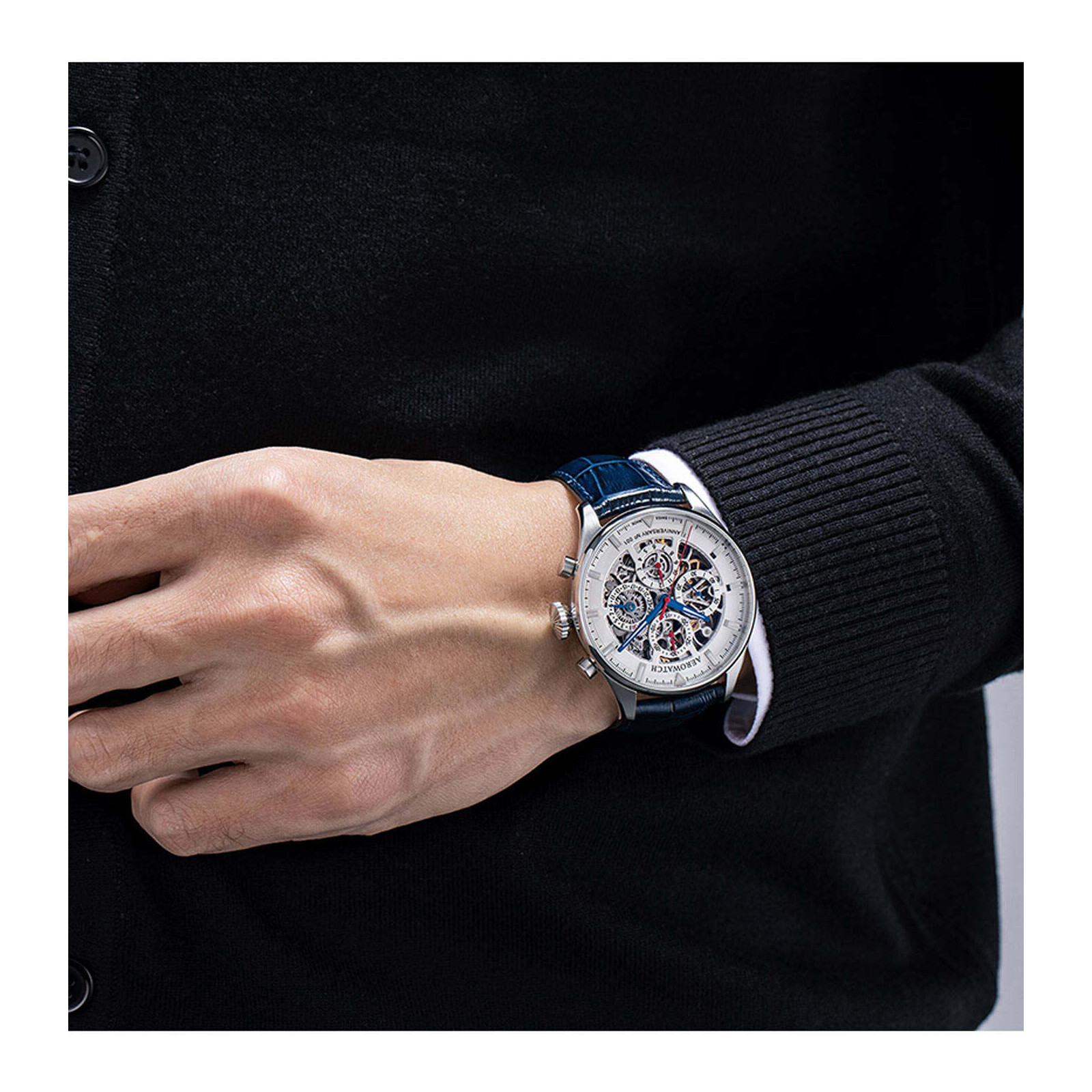 Aerowatch Les Grandes Classiques Anniversary Skeleton to zegarek skierowany do osób lubiących wyjątkowe i niepowtarzalne przedmioty. Wysoka jakość wykonania, dbałość o każdy detal, szkieletowa konstrukcja mechanizmu oraz indywidualny numer na tarczy to nie wszystkie walory tego czasomierza. Dobrze dobrana kolorystyka również nie jest bez znaczenia.