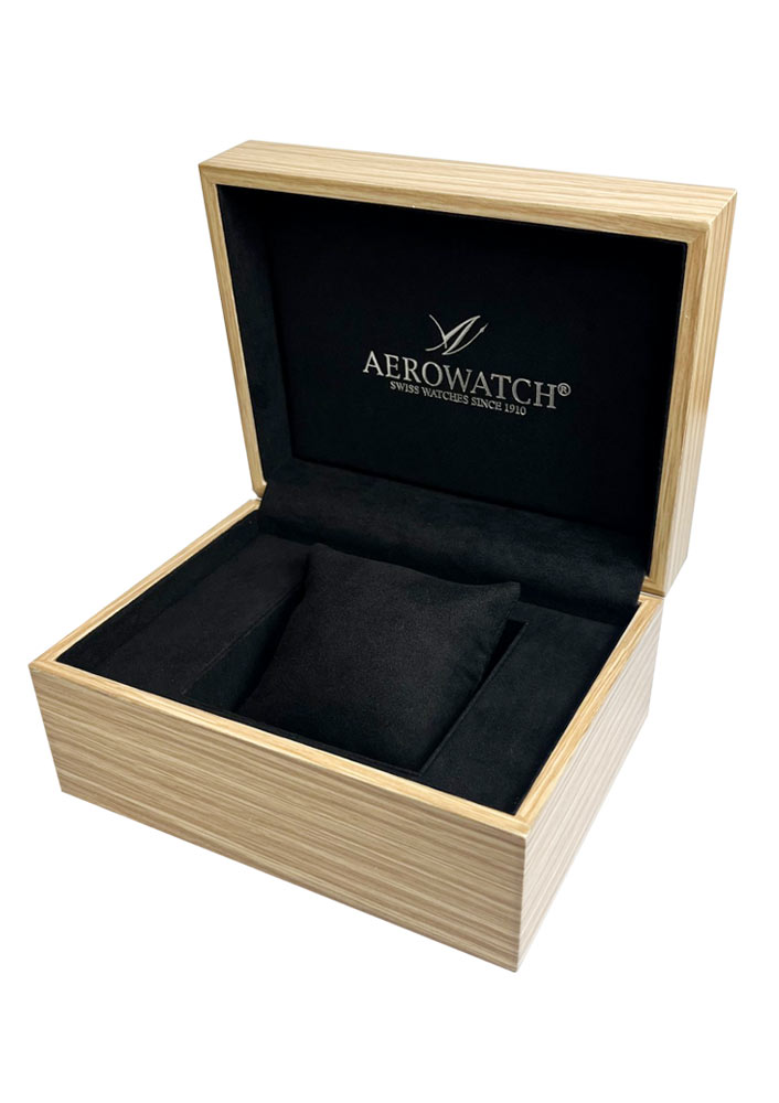 Niezwykłym elementem tego zegarka jest szlifowany, wklęsły cyferblat, na którym umieszczono osobną tarczę sekundnika, wprowadzając subtelność i wyrafinowanie. 43-milimetrowa koperta doskonale współgra ze stalową bransoletą w kolorze srebrnym. Stosowanie materiałów najwyższej jakości, takich jak stal szlachetna i szkło szafirowe, gwarantuje trwałość i niezawodność zegarka Aerowatch. W środku obudowy zainstalowany został wyjątkowy mechanizm ręcznie nakręcany AERO DB9 SWISS z rezerwą chodu do 46 godzin. Pracę tego skomplikowanego układu podziwiać można dzięki transparentnemu deklowi na tylnej części obudowy.