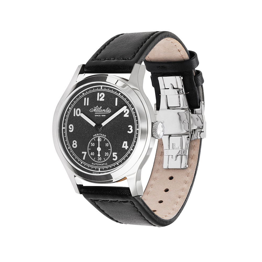 Atlantic Worldmaster Original Heritage Black to automatyczny zegarek męski w stylu vintage spełniający nowoczesne standardy jakości. Jego tarczę w kolorze czarnym cechuje ziarnista faktura i obecność czytelnie kontrastujących cyfr arabskich w całości wypełnionych substancją luminescencyjną. W ciemności równie jasno będą świecić duże wskazówki, wskazówka na subtarczy sekundnika oraz pierścień nad 12-godzinną skalą czasu. Całość zabezpieczona jest najwyższej jakości, niemal niemożliwym do zarysowania, soczewkowym szkłem szafirowym wzbogaconym o powłokę antyrefleksyjną. Elegancka, wysoce polerowana koperta o średnicy 40 milimetrów wykonana jest z wysokogatunkowej stali szlachetnej, która zapewnia znakomitą odporność na zarysowania i korozję. Obudowa mieści w sobie niezawodny, szwajcarski mechanizm automatyczny Sellita 261-1 z małą sekundą. Czasomierz z przeszklonym tyłem, przez który można oglądać zachwycającą pracę mechanizmu, jest zawieszony na przeszywanym pasku skórzanym w kolorze czarnym. Dodatkowo, w skład zestawu zalicza się drugi pasek skórzany.