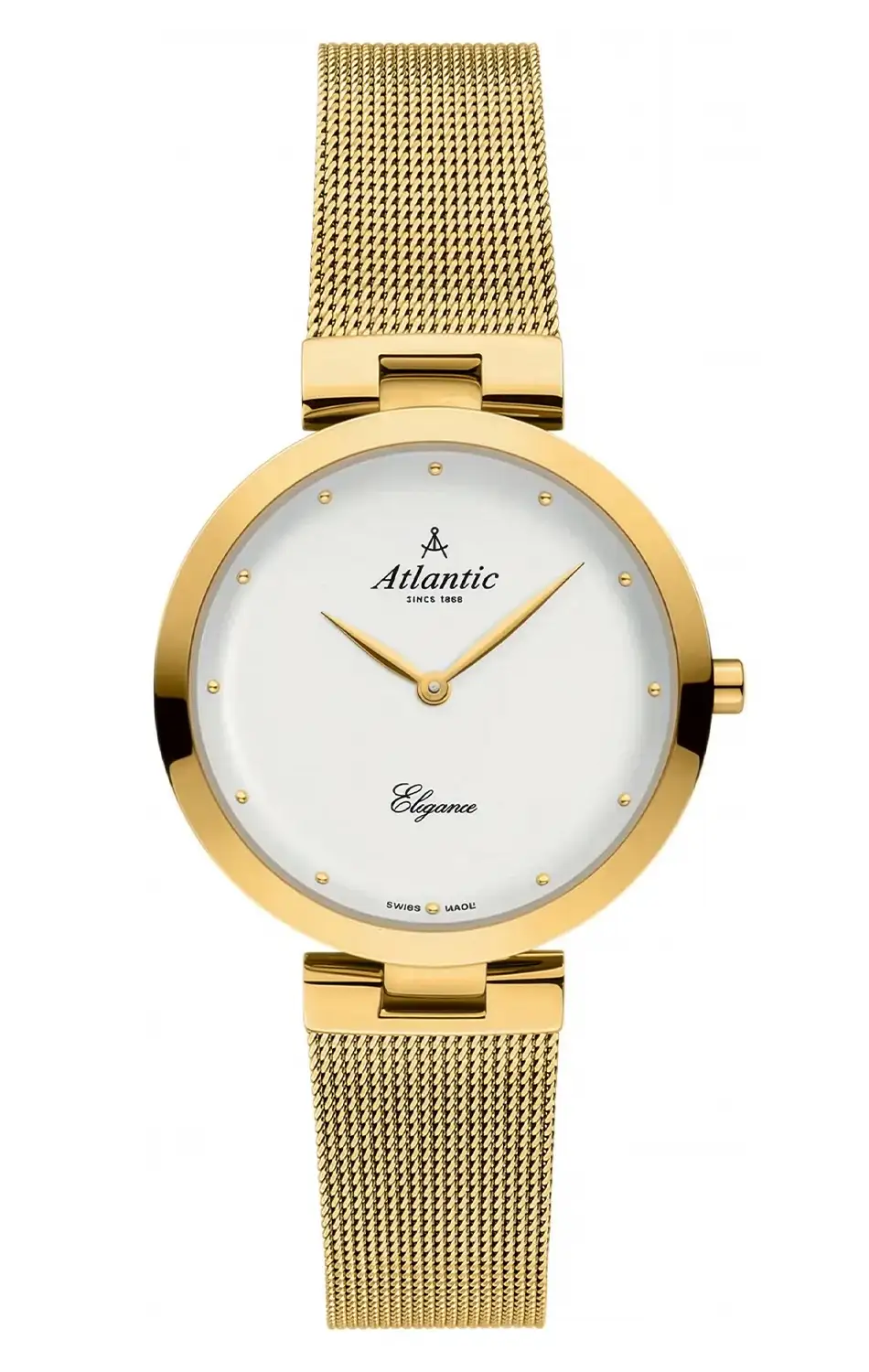 Pozłacany zegarek damski Atlantic Elegance 29036.45.21MB został zaprojektowany z myślą o kobietach, które w modzie cenią klarowność, balans i nowoczesną klasykę. Złocona powłoką PVD koperta, bransoleta mesh i minimalistyczna forma tworzą projekt, który nie potrzebuje dodatkowych ozdób, by przyciągać uwagę. Ten model świetnie sprawdza się jako elegancki, ale nienarzucający się dodatek — do pracy, na spotkanie, czy na wieczór.