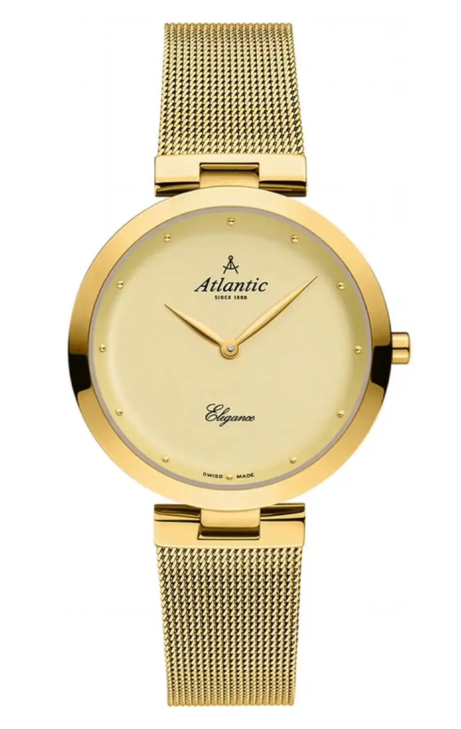 Pozłacany zegarek damski Atlantic Elegance 29036.45.31MB został zaprojektowany z myślą o kobietach, które w modzie cenią klarowność, balans i nowoczesną klasykę. Złocona powłoką PVD koperta, bransoleta mesh i minimalistyczna forma tworzą projekt, który nie potrzebuje dodatkowych ozdób, by przyciągać uwagę. Ten model świetnie sprawdza się jako elegancki, ale nienarzucający się dodatek — do pracy, na spotkanie, czy na wieczór.