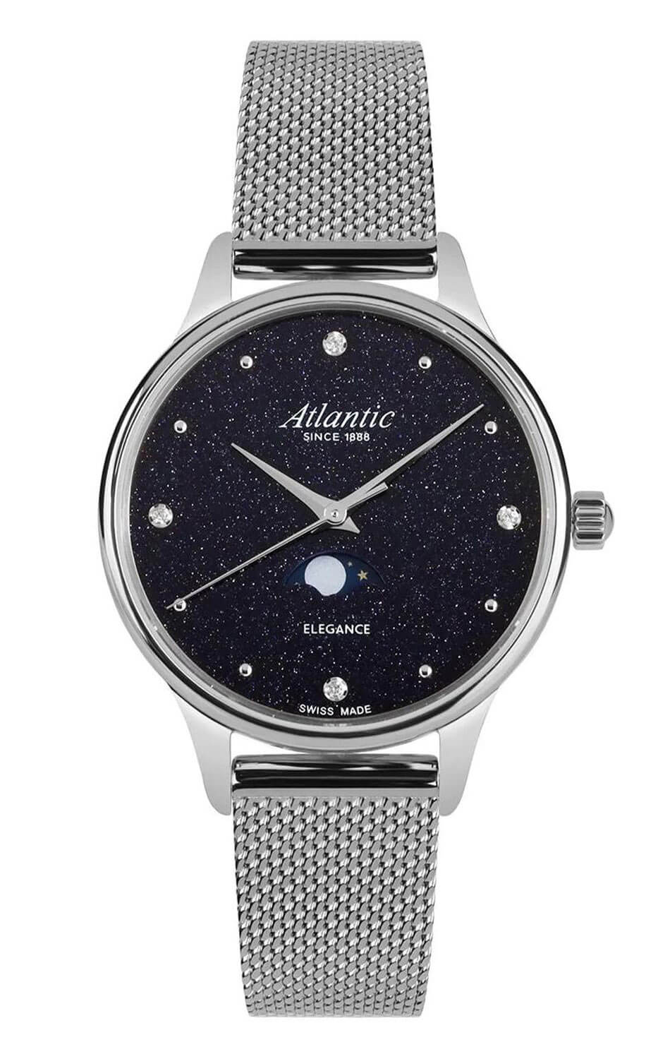 Zegarek damski Atlantic Elegance Aventurine 30230.41.59MB to model stworzony z myślą o kobietach, które cenią wyrafinowane dodatki i lubią, gdy biżuteria łączy się z funkcjonalnością. Smukła forma, połyskujące detale i subtelna komplikacja faz księżyca sprawiają, że ten model świetnie odnajduje się zarówno w eleganckich stylizacjach, jak i jako codzienny akcent w bardziej minimalistycznym wydaniu.