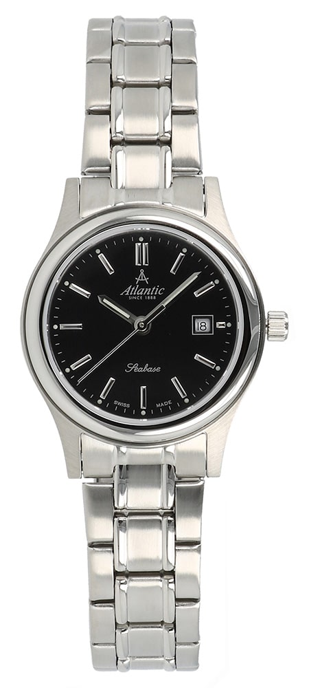 Powyższy model należący do popularnej rodziny Atlantic Seabase Ladies łączy funkcje odmierzania czasu, daty i wysokiej jakości materiały. Do tych ostatnich należy hipoalergiczna stal szlachetna klasy 316L, z której stworzona została elegancka wypolerowana koperta o wymiarach 27 mm x 7.00 mm oraz wielorzędowa bransoleta o dwóch rodzajach wykończeń. Drugim materiałem najwyższej jakości jest praktycznie odporne na zarysowania szkło szafirowe.