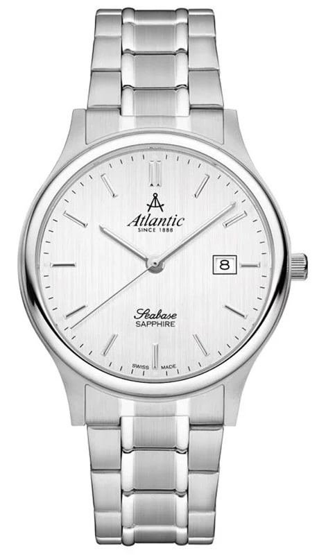 Powyższy model należący do popularnej rodziny Atlantic Seabase łączy funkcje odmierzania czasu, daty i wysokiej jakości materiały. Do tych ostatnich należy hipoalergiczna stal szlachetna klasy 316L, z której stworzona została elegancka wypolerowana koperta o wymiarach 40 mm x 8.00 mm oraz wielorzędowa bransoleta o dwóch rodzajach wykończeń. Drugim materiałem najwyższej jakości jest praktycznie odporne na zarysowania szkło szafirowe.
