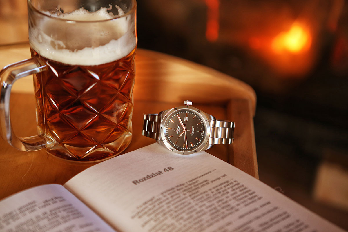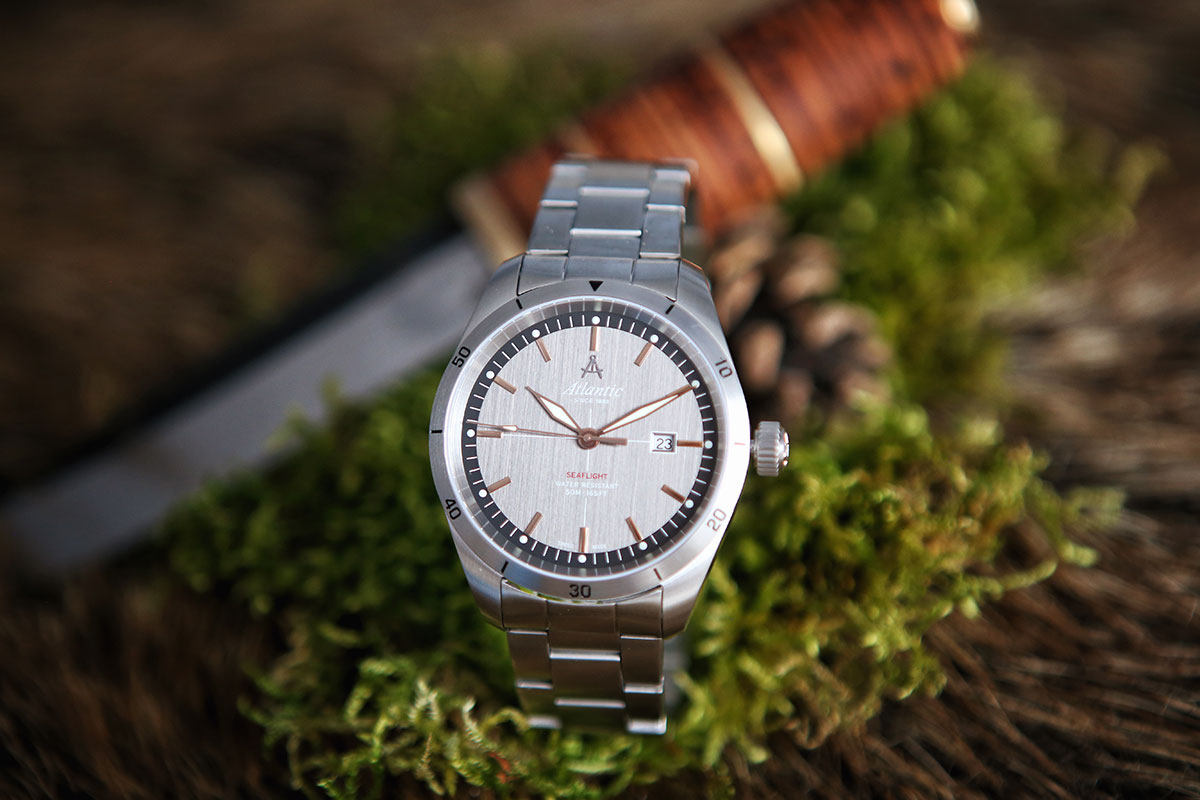 Zegarek męski Atlantic Seaflight 70356.41.41R. Szwajcarka interpretacja modelu typu "pilot" uznanego producenta w dziedzinie zegarków klasycznych. Masywna koperta o średnicy 44 mm skrywa szczotkowaną, stalową tarczę w kolorze brązowym, na której widnieje okno datownika oraz charakterystyczne dla pilotów wskazówki godzinową, minutową oraz sekudnową. Wokół tarczy umieszczono czarny pierścień w podziałką minutową, dodają w ten sposób kontrastowego, dynamicznego wyglądu. Model na trwałej i mocnej bransolecie zabezpieczonej motylkowym zapięciem zwalnianym po wciścięciu przycisków. Pewna i solidna konstrukcja tego zegarka to filar, na którym bazuje cały projekt stylu "pilot".