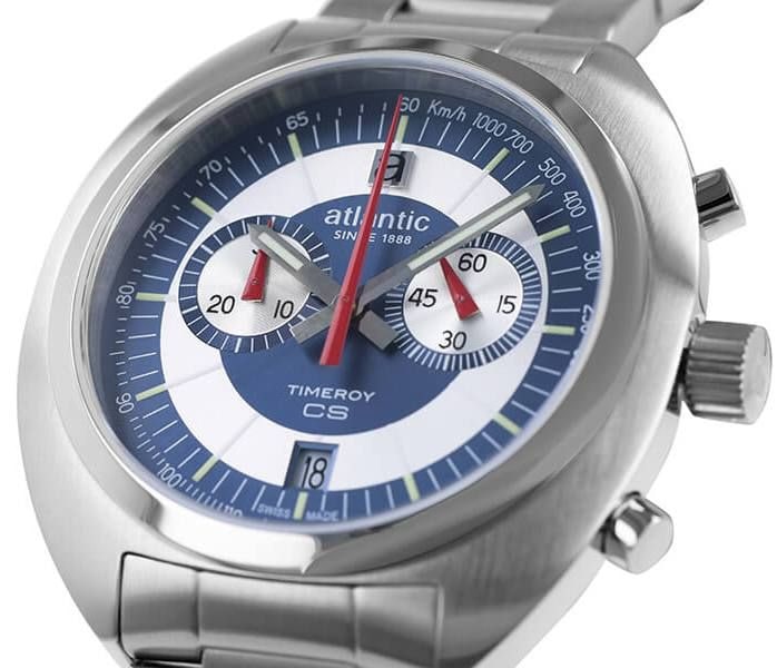 Atlantic Timeroy CS Chrono 70467.41.55 posiada znaną i cenioną za masywny wygląd i jednoczesną wygodę w noszeniu kopertę typu "żółw". Jej 42-milimetrowa średnica ukazana w latach 70. okazała się na tyle uniwersalna, że twórcy postanowili zastosować ten właśnie wymiar obudowy ponownie w odświeżonym modelu. Wykonana jest ze stali szlachetnej nierdzewnej i wykończona szczotkowaniem, natomiast ciekawy aspekt stanowi wysoce polerowany, ukośny pierścień, którego góra oraz dół jednoczą się z kopertą, a dodatkowo dodają zegarkowi elegancji.