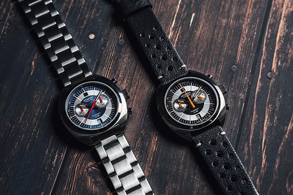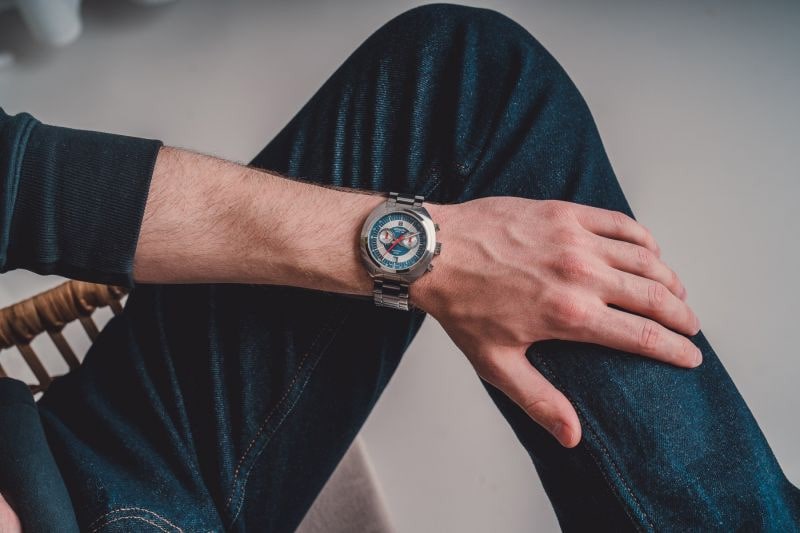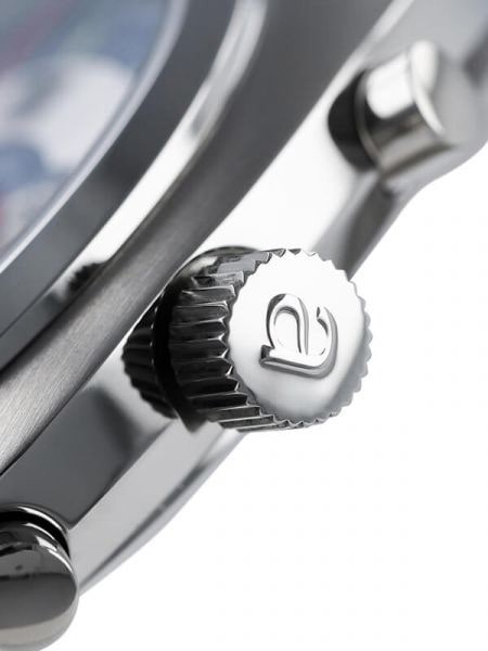 Szereg podobieństw dostrzec można po pierwsze na tarczy. Jej kompletność oraz kontrastowe wzornictwo wciąż rodzą doskonałą czytelność i oryginalność. Ikoniczne, symetrycznie ułożone subtarcze pozostały na dawnym miejscu, pod godziną 12 umieszczono literę "a", nad wskazaniami zaaplikowano nazwę marki oraz datę jej powstania, z kolei pod - nazwę kolekcji. Jedna z niewielu różnic, jaka zauważalnie dzieli model archiwalny z dzisiejszym, to przeniesiona z ramki do wewnątrz skala tachymetru. Dzięki szlifowanemu wykończeniu cyferblat połyskuje całą swoją powierzchnią, choć lepiej widać to na surowym, stalowym segmencie. Wskazówka sekundowa jest w kultowym kształcie wydłużonego trójkąta. Indeksy i wskazania pokrywa substancja luminescencyjna, a całość zakrywa najwyższej jakości, wysoce odporne na zarysowania szkło szafirowe.