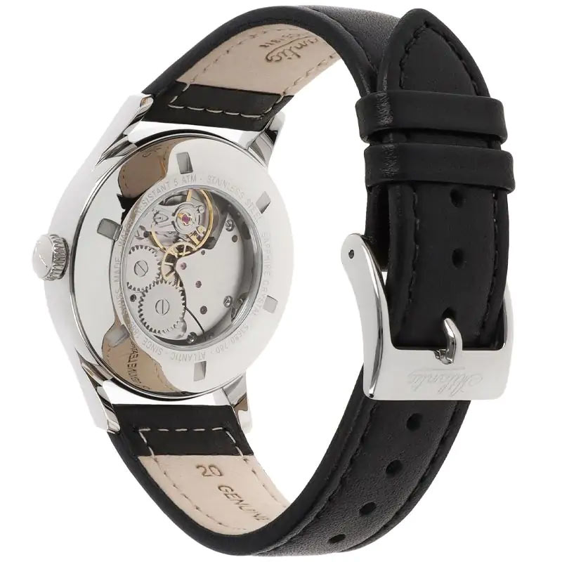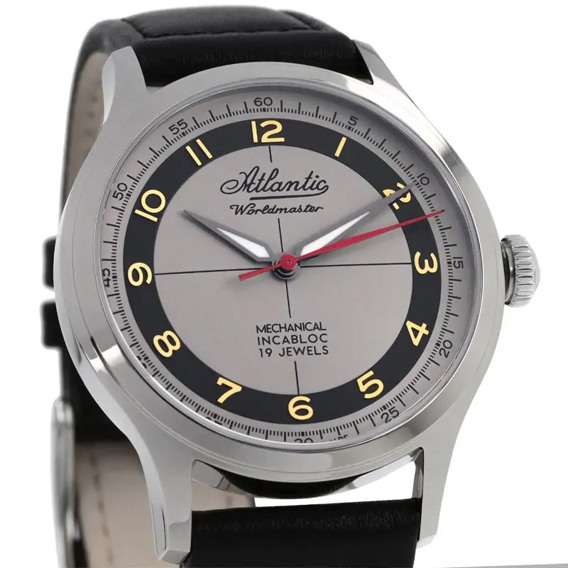 Atlantic Worldmaster Mechanical Incabloc to luksusowy, szwajcarski zegarek mechaniczny należący do wielkiej kolekcji WORLDMASTER. Kolekcji, która stanowi flagową, najbogatszą oraz prawie najstarszą rodzinę zegarków automatycznych marki Atlantic. Elegancki, ręcznie nakręcany zegarek Atlantic Mechanical Incabloc to dzieło o tradycyjnym retro charakterze i jednocześnie godny reprezentant szwajcarskiej jakości. We wnętrzu jego 39-milimetrowej, polerowanej koperty wykonanej ze stali nierdzewnej skryty jest wysoce niezawodny mechanizm mechaniczny Swiss Made.