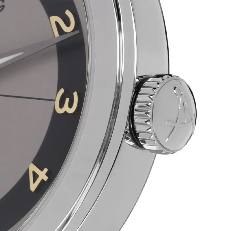 Samą obudowę wraz z cyferblatem inspirowanym tarczą kompasu zaprojektowano z dbałością o subtelne, ale jakże ważne dla użytkownika zegarków mechanicznych szczegóły. 12 cyfr arabskich spoczywa na charakterystycznej obręczy zabarwionej na niebiesko. Wskazówki godzinowa i minutowa otoczone są czarnym, czytelnym konturem i pokryte świecącą w ciemności substancją luminescencyjną. Wskazówka sekundowa w kolorze czerwonym w opozycji dla srebrnej tarczy jest nie do przeoczenia. Pierścień z 60-minutową podziałką nad godzinami wspaniale uzupełnia komplet informacji o czasie. Sferyczne, wysoce nierysujące się szkło szafirowe jest w tym przypadku zwieńczeniem spójnej całości utrzymanej w wyjątkowym stylu.