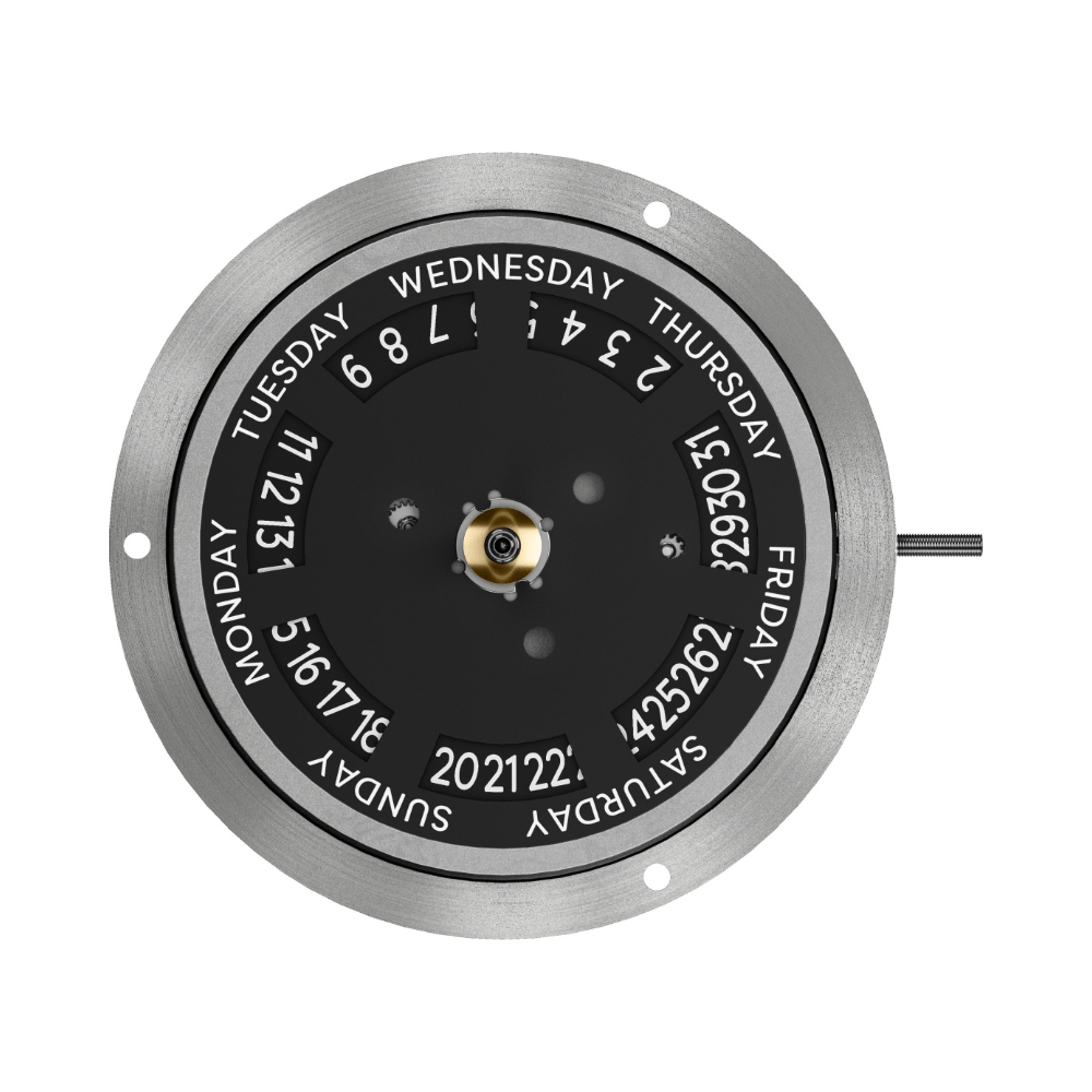 Sercem tego zegarka day-date jest najnowszy kaliber AV-1000 opracowany przez firmę AVIATOR. Jego bazę stanowi najlepiej znany szwajcarski mechanizm mechaniczny Sellita SW 240-1. Kaliber AV-1000 został wykonany z połączenia zaawansowanej technologii oraz estetyki. Z funkcjonalnością u fundamentów, werk ten zawiera wskaźniki dnia tygodnia i daty. System Incabloc chroni mechanizm przed wstrząsami i uderzeniami. Tymczasem ponadwymiarowy i efektownie wykonany wahnik spójnie koresponduje ze wzorem cyferblatu, aby utrzymać styl art deco zarówno z przodu, jak i z tyłu czasomierza.