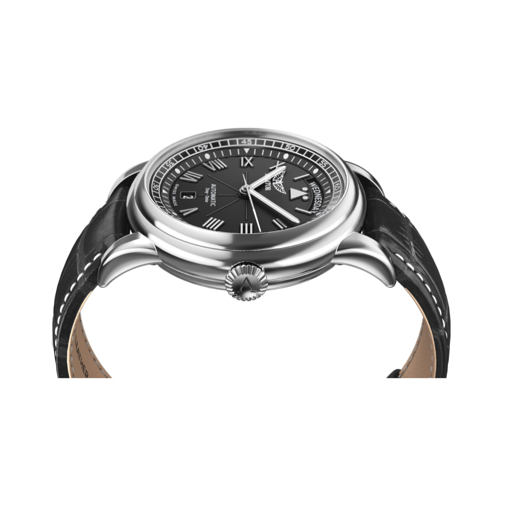 Cyferblat zegarka z dniami tygodnia AVIATOR Douglas Day Date 41 charakteryzuje się delikatnym wzorem 3D z wolumetrycznymi oznaczeniami i szykownie zakrzywionym oknem wskazującym bieżący dzień. Z racji tego, iż niezakłócona widoczność oraz czytelność są zasadniczymi atrybutami, kolekcja Douglas Day Date 41 zrzesza design i funkcjonalność w stylu Art Deco. Od odważnych, kunsztownie wypolerowanych cyfr rzymskich po dwa wzniesione pierścienie instrumentów ze świecącymi indeksami inspirowanymi licznikami w kokpicie. Za sprawą głębokich i subtelnych rowków wzór tarczy oddaje refleksy kolorów, które przywodzą skojarzenie z efektem metalicznego jedwabiu, a także symbolizuje nieprzemijające wyrafinowanie.