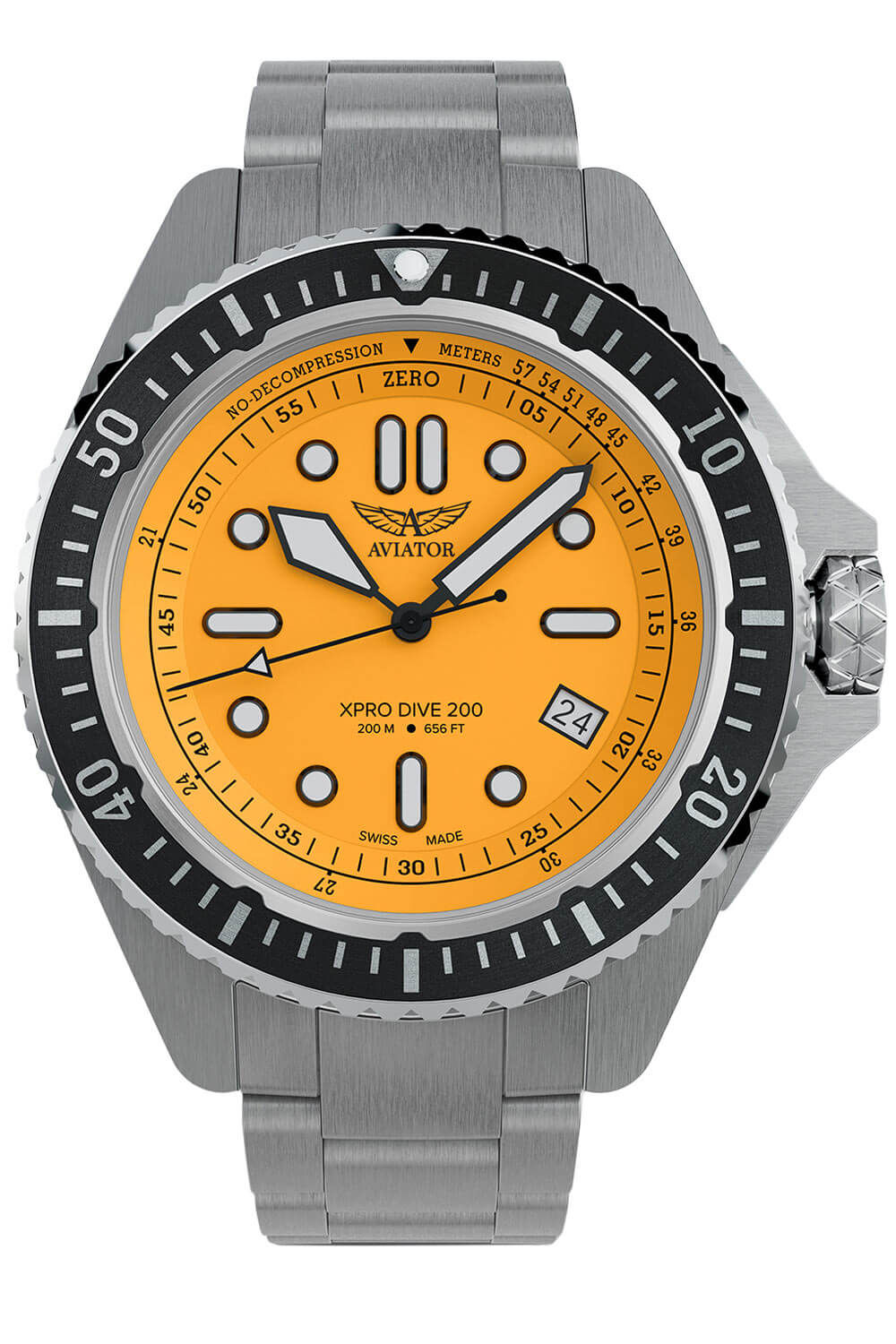 Zegarek męski Aviator XPRO Dive 200 to profesjonalny czasomierz do nurkowania i lotów wysokogórskich, łączący szwajcarską precyzję z odpornością na ekstremalne warunki. Wodoszczelność do 200 metrów.