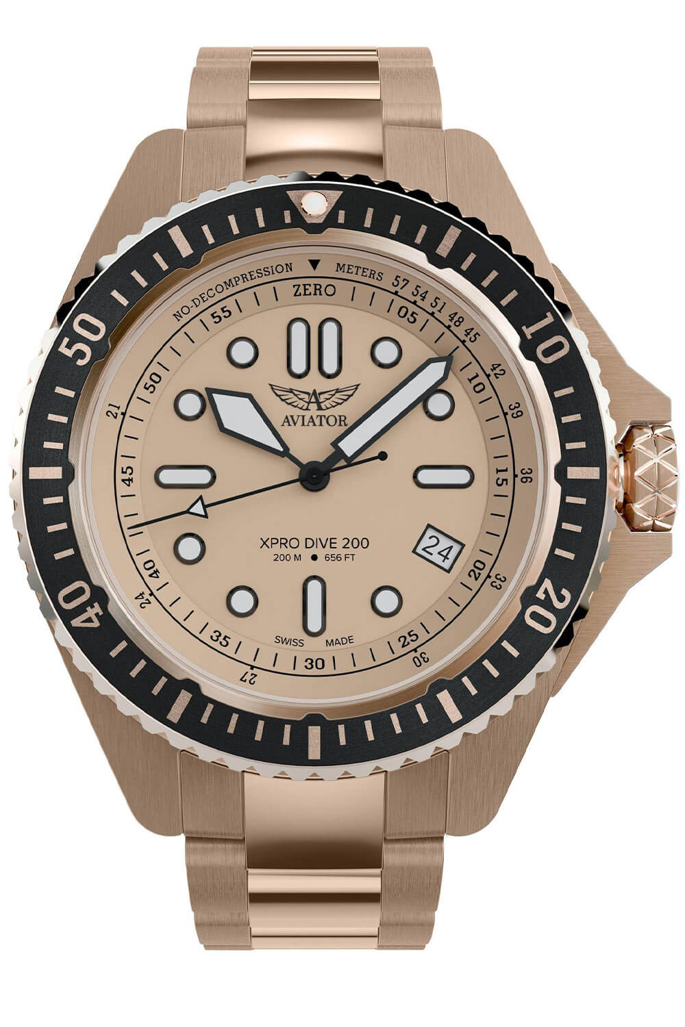 Zegarek męski Aviator XPRO Dive 200 to profesjonalny czasomierz do nurkowania i lotów wysokogórskich, łączący szwajcarską precyzję z odpornością na ekstremalne warunki. Wodoszczelność do 200 metrów.