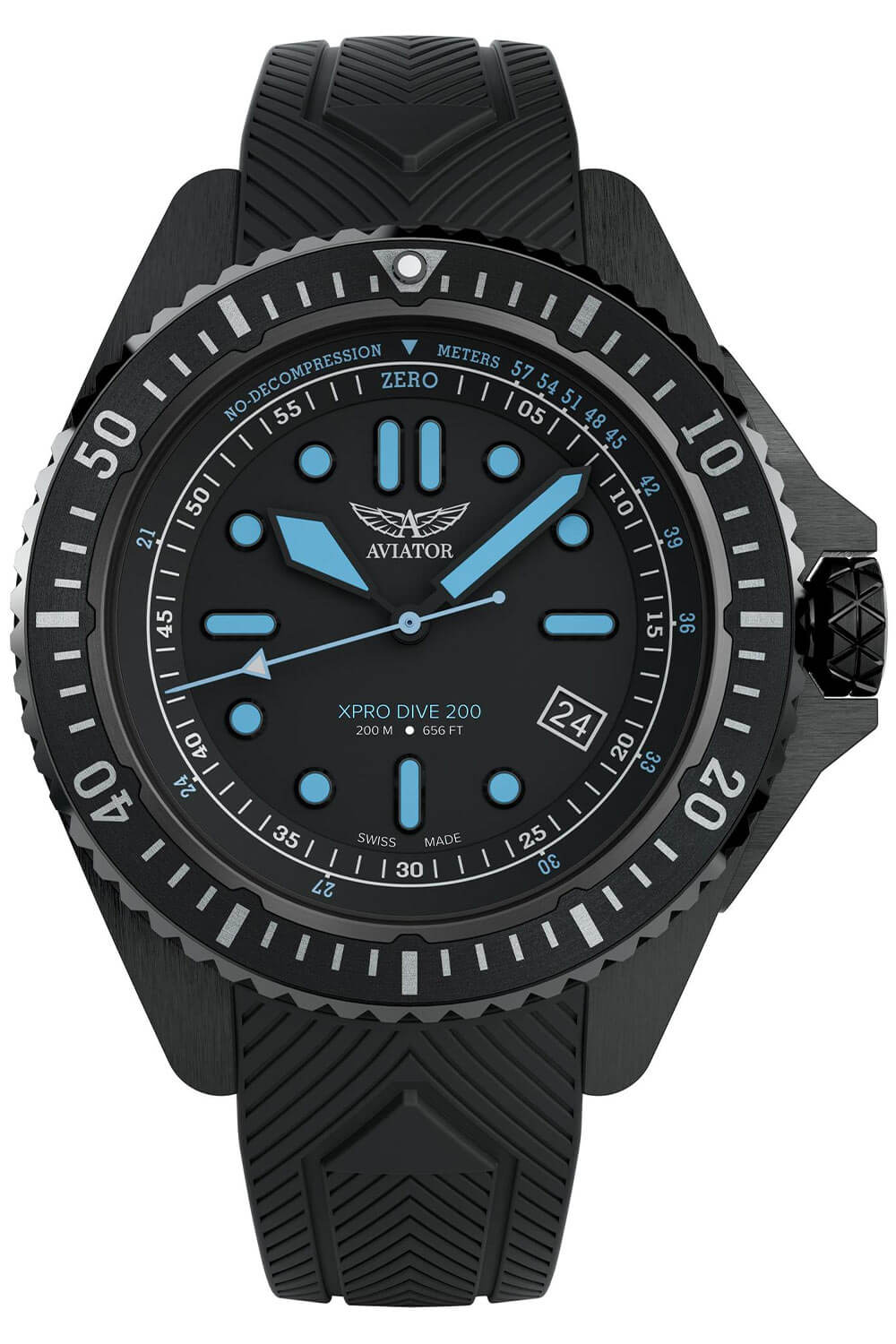 Zegarek męski Aviator XPRO Dive 200 to profesjonalny czasomierz do nurkowania i lotów wysokogórskich, łączący szwajcarską precyzję z odpornością na ekstremalne warunki. Wodoszczelność do 200 metrów.