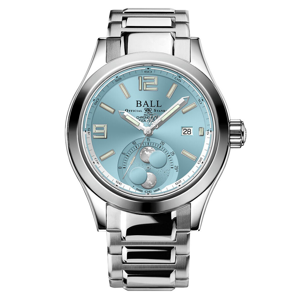 Podwójny wyświetlacz faz księżyca precyzyjnie przedstawia cykle zarówno w północnej, jak i południowej półkuli. Podwyższenie na godzinie 6 wyświetla fazy księżyca dla obu półkul, dokładnie odzwierciedlając naturalne zjawiska astronomiczne. Oferowany w rozmiarze 43 mm zegarek Ball zestawiony został z bransoletą, która wyposażona jest w bezpieczne i wygodne w obsłudze zapięcie motylkowe. Rewers koperty to stalowy dekiel ozdobiony tłoczeniem w postaci lokomotywy, która jest nieodłącznym symbolem marki Ball. Z limitowanym zegarkiem Ball można pływać — obudowa jest wodoszczelna do głębokości 100 metrów.