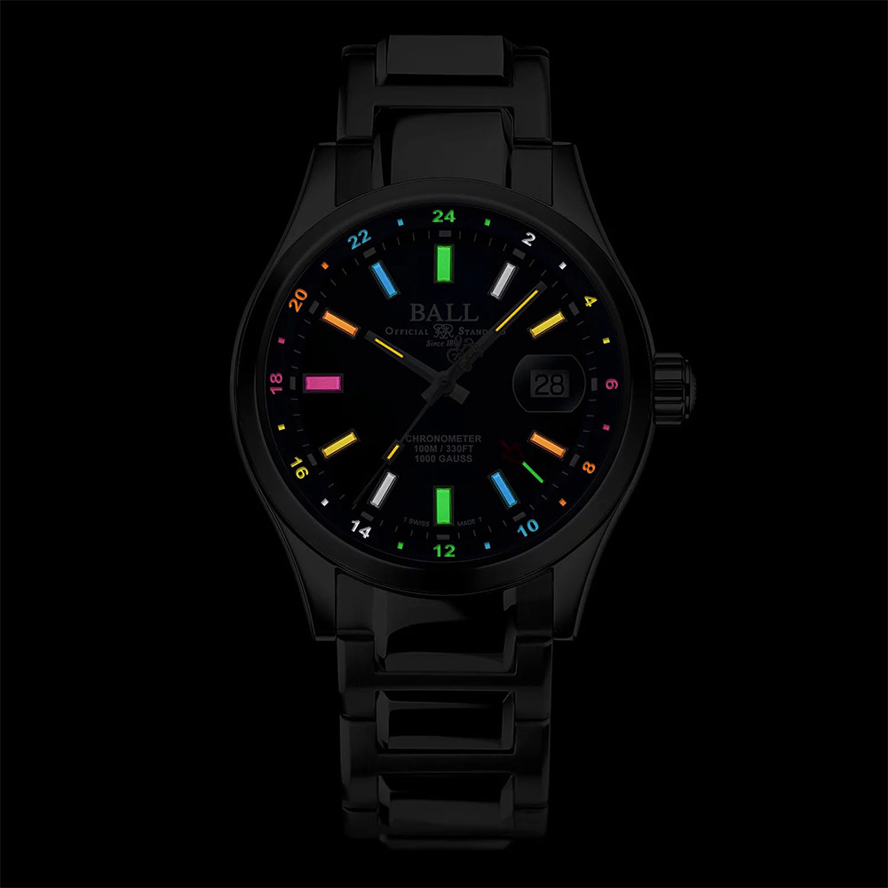 Czasami nie istnieje droga ucieczki przed ciemnością. W trakcie wyprawy Shackleton wraz ze swą załogą przetrwał 17 godzin bez dostępu do światła dziennego. Aby zwyciężyć nad czernią nocy i całym ciemnym środowiskiem, seria Endurance została wyposażona w mikro rurki gazowe H₃ z własnym zasilaniem. Mikro rurki z gazem trytowym gwarantują ekstremalną czytelność, jak i zaufaną niezawodność we wszystkich zajęciach. Moc światła jest uwalniana, gdy cząsteczki H₃ uderzają w wewnętrzną kolorową powierzchnię 39 probówek. Podczas gdy wszystkie modele wyposażone są w mikro rurki trytowe na tarczy i wskazówkach, linia GMT posiada je nawet na wewnętrznej ramce do odczytu domowego czasu 24-godzinnego w całkowitej ciemności. Wszechobecny blask rozciąga się na wszystkich wskazówkach – nawet na wskazówce GMT – i wokół tarczy z całkowicie podświetlonymi znacznikami godzin. Zegarek z drugą strefą czasową/GMT Ball został osłonięty praktycznie odpornym na zarysowania szkłem szafirowym z powłoką antyrefleksyjną.