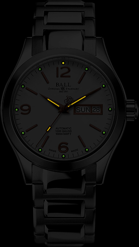 Engineer III Ohio posiada elegancki design odpowiedni do każdego rodzaju sytuacji. Prostota konstrukcji zapewnia doskonałą czytelność. Ten elegancki zegarek jest klasyczny, z wyjątkiem tego, gdy zgasną światła. BALL wyposażył go w mikro rurki z gazem H₃, które sprawiają, że jest bardzo dobrze widoczny nawet w całkowitej ciemności. Mikro rurki gazowe H₃ nie wymagają zewnętrznego źródła energii, a ich blask w niezmienionej postaci jest zapewniony przez co najmniej 25 lat. Intensywność świetlna jest sto razy jaśniejsza niż zwykła substancja luminescencyjna powszechnie stosowana w zegarmistrzostwie. Indeksy i wskazówki są zawsze widoczne w ciemności dzięki mikro rurkom gazowym.