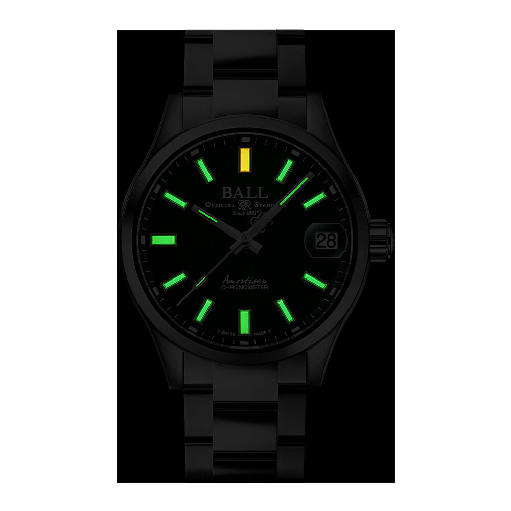 Zegarek męski na bransolecie Ball Engineer Master II Endurance 1917 Limited Edition NM3500C-S2C-GR zabezpiecza opatentowany system przeciwwstrząsowy Amortiser®, a wzmacnia olej odporny na niskie temperatury. Ten drugi umożliwia pomiar czasu przy temperaturze sięgającej nawet do -45 stopni Celsjusza. Szwajcarski kaliber automatyczny BALL RR1108-C z rezerwą mocy do około 54 godzin oraz cała jego funkcjonalność jest również chroniona przez antymagnetyczną technologię ochronną. Za jej dostarczanie odpowiedzialna jest osłonka z mu-metalu, która zapewnia niezwykle solidną ochronę przed polami magnetycznymi do 1000 Gaussów (80 000 A/m).