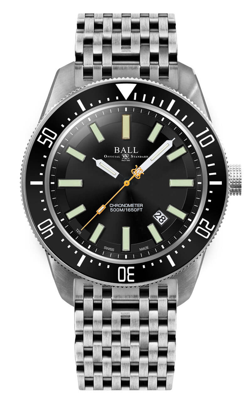 Koperta o średnicy 42 mm została wykonana z odpornej na korozję stali szlachetnej i jest połączona z masywną, pięciorzędową bransoletą typu „engineer”, która zapewnia stabilność nawet w dynamicznych warunkach. Model oferuje imponującą klasę szczelności aż do 500 metrów – co czyni go jednym z najbardziej zaawansowanych diverów w ofercie Ball. Jednokierunkowa luneta z naniesioną skalą nurkową oraz zakręcana koronka gwarantują bezpieczeństwo i funkcjonalność przy pracy w głębinach. Całość dopełnia solidna konstrukcja, gotowa sprostać każdemu wyzwaniu pod powierzchnią wody.