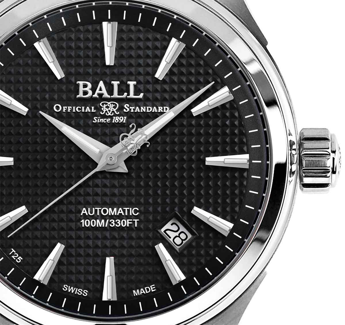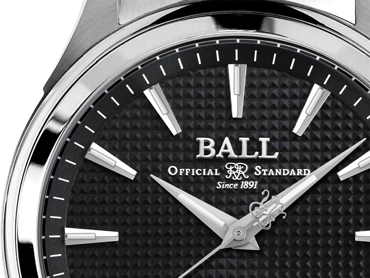 Ball Fireman Victory ma niesamowity cyferblat w kolorze czarnym, ozdobiony wzorem Clous De Paris. Tarcza w kształcie patelni nadaje zegarkowi głębię. Podstawowe indeksy i zaostrzone wskazówki zawierają rurki z mikro gazem, który świeci nieprzerwanie przez 25 lat.