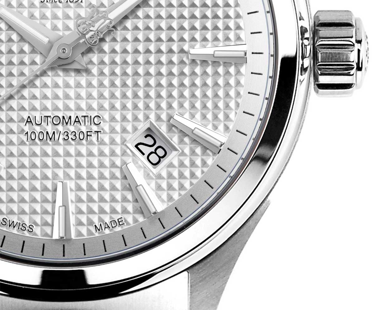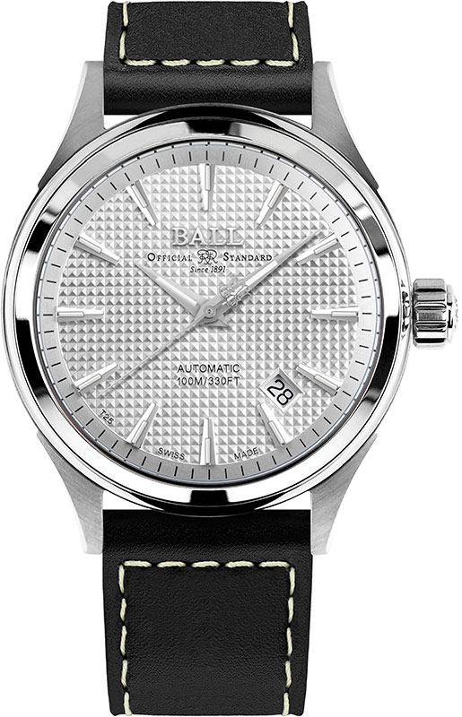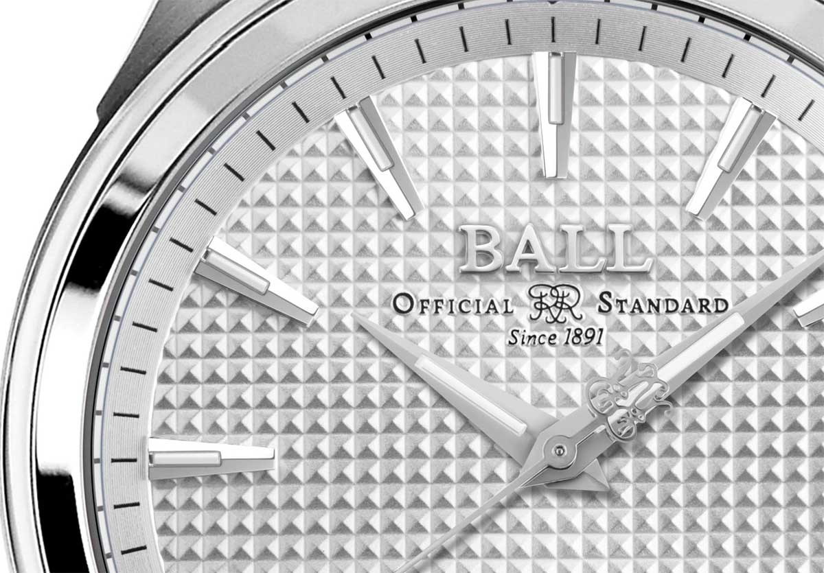 Ball Fireman Victory ma niesamowity cyferblat w kolorze srebrnym, ozdobiony wzorem Clous De Paris. Tarcza w kształcie patelni nadaje zegarkowi głębię. Podstawowe indeksy i zaostrzone wskazówki zawierają rurki z mikro gazem, który świeci nieprzerwanie przez 25 lat.