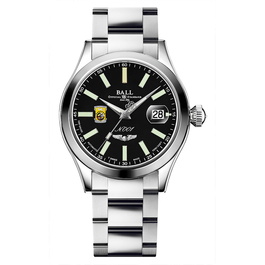 Tarcza zegarka wojskowego Ball NM3000C-S1-BK ozdobiona została oryginalnym emblematem Doolittle Raiders i Skrzydłami Lotnika Marynarki Wojennej. Numer limitowanej edycji jest namalowany na tarczy, w trakcie gdy pozostała część projektu jest zredukowana i zawiera jedynie niezbędne, czytelne elementy, pozwalające skupić się na odczytywaniu czasu. Lotnicy potrzebują dużych, wyraźnych zegarków. Aby sprostać temu wyzwaniu, firma BALL Watch Company zapewniła indeksy i wskazówki w serii zegarków lotniczych Engineer Master II Doolittle Raiders z mikro rurkami gazowymi H₃. Ta najnowocześniejsza, szwajcarska technologia sprawia, że tarcza jest doskonale widoczne nawet w zupełnej ciemności. Mikro rurki gazowe H₃ nie wymagają dostępu do żadnego, zewnętrznego źródła zasilania i świecą do 25 lat, z intensywnością sto razy jaśniejszą niż substancja świetlna tradycyjnie stosowana w przemyśle zegarkowym. Szerokie rurki używane do indeksów mają jasnozielony odcień i pomarańczowy na godzinie 12, z kolei te na wskazaniach świecą na żółto. Dzięki zoptymalizowanemu układowi seria Engineer Master II Doolittle Raiders sprawia, że opowieść o czasie w ciemności jest genialnie łatwe. Automatyczna wersja 40 mm zawiera automatyczny mechanizm ze wskazówkami godzinowymi, minutowymi i sekundowymi, a także okno daty na godzinie 3. Czasomierz mieści się w wytrzymałej i odpornej kopercie wykonanej ze stali nierdzewnej, odpornej na wstrząsy do 5 000 G. Dodatek w postaci mumetalowej osłony podwyższa odporność na magnetyzm do 80 000 A / m lub 1000 Gaussa.