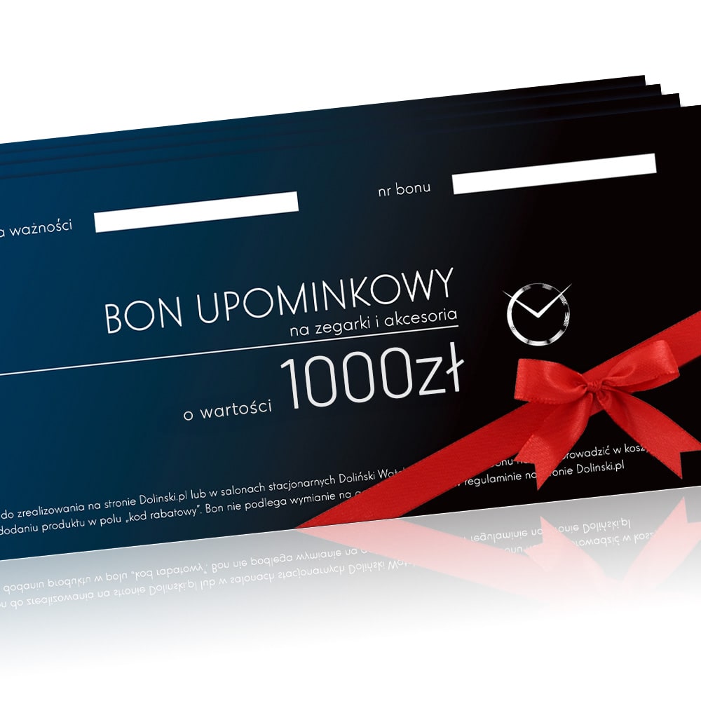 To bez wątpienia modny i elegancki prezent dla każdego. Zakupione bony można sumować. Bony mogą być wykorzystane na zakup dowolnych zegarków i akcesoriów w naszych sklepach stacjonarnych oraz sklepie internetowym Dolinski.pl. Jeśli szukasz pomysłu na prezent, nie ryzykuj! Obdarowany sam decyduje, na jakie produkty zrealizuje swój bon upominkowy. To gwarancja udanego i eleganckiego prezentu.