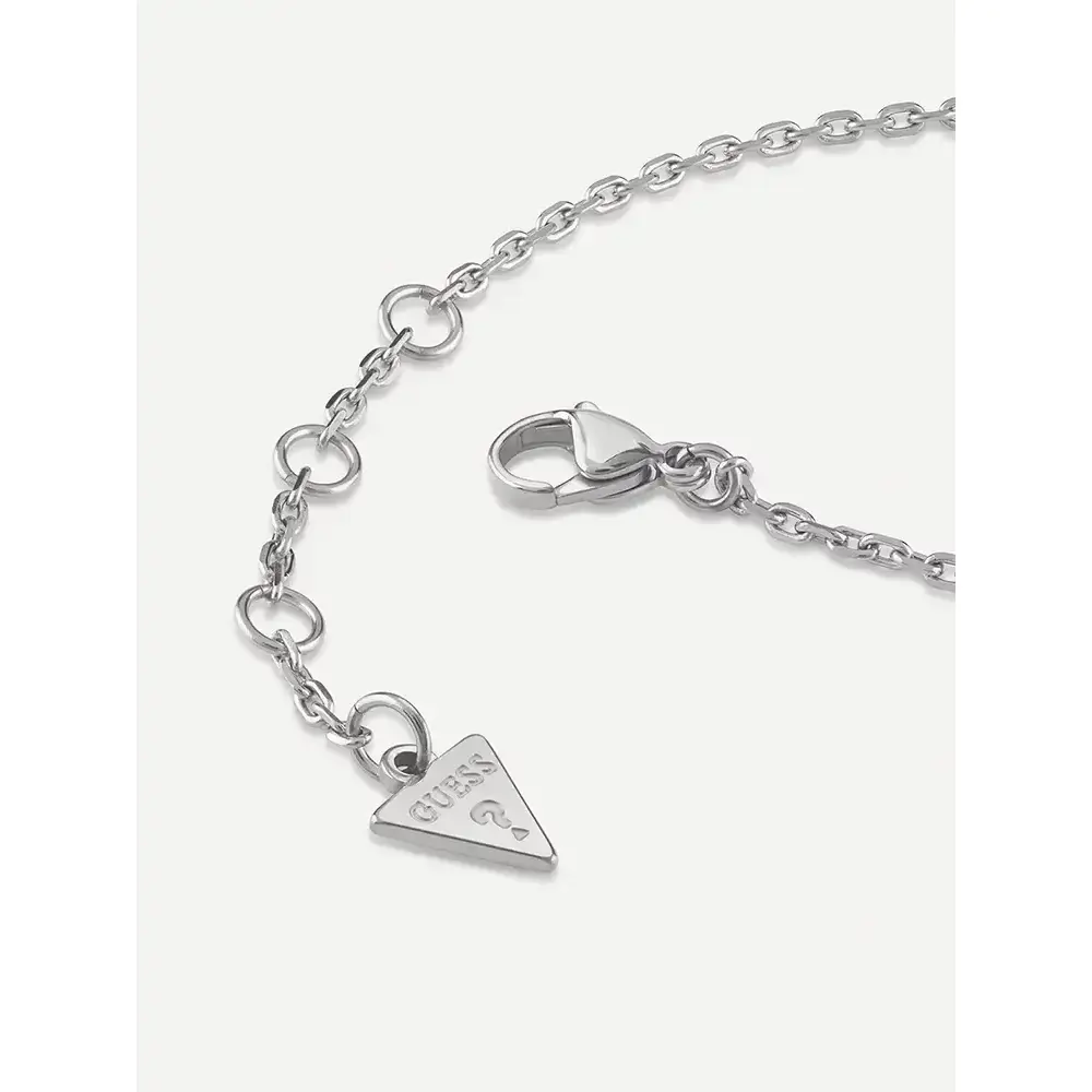 Charakterystycznym elementem bransoletki jest logowany detal GUESS oraz kultowy trójkątny charm z logo marki, który subtelnie podkreśla designerskie DNA tej amerykańskiej ikony stylu. Regulowane zapięcie umożliwia dopasowanie długości do nadgarstka, zapewniając idealne przyleganie i komfort użytkowania. To biżuteria stworzona z myślą o kobietach, które łączą klasykę z nowoczesnym minimalizmem i cenią sobie jakość w każdym szczególe.