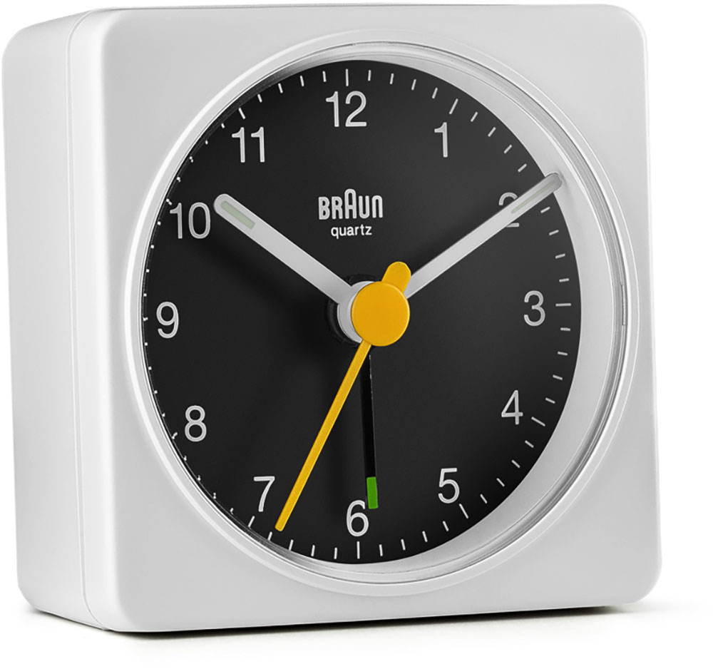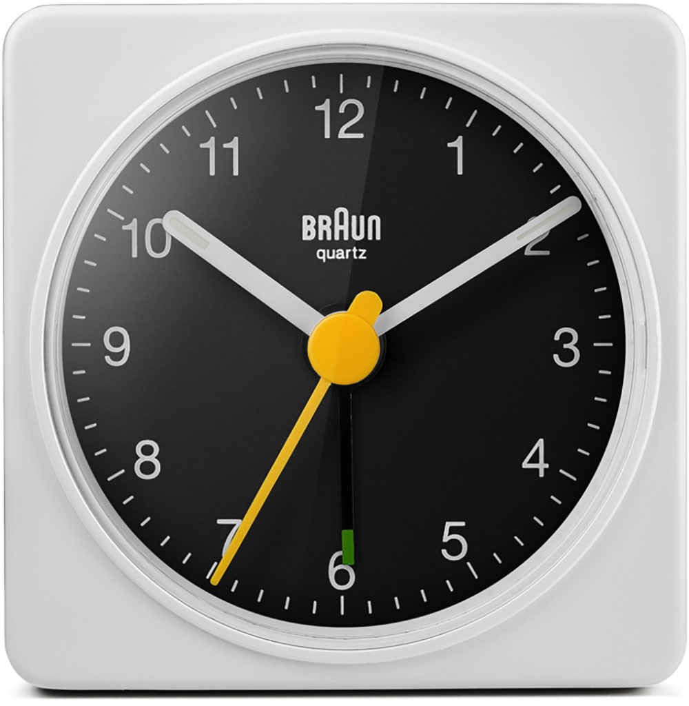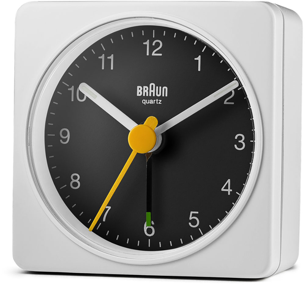 Klasyczny, biały budzik podróżny marki Braun BC02XWB ma czytelną tarczę z kultowym żółtym sekundnikiem, który stał się synonimem wielokrotnie nagradzanego designu marki Braun. Prosty wygląd i łatwość użytkowania sprawiają, że jest to wyjątkowy budzik Braun.