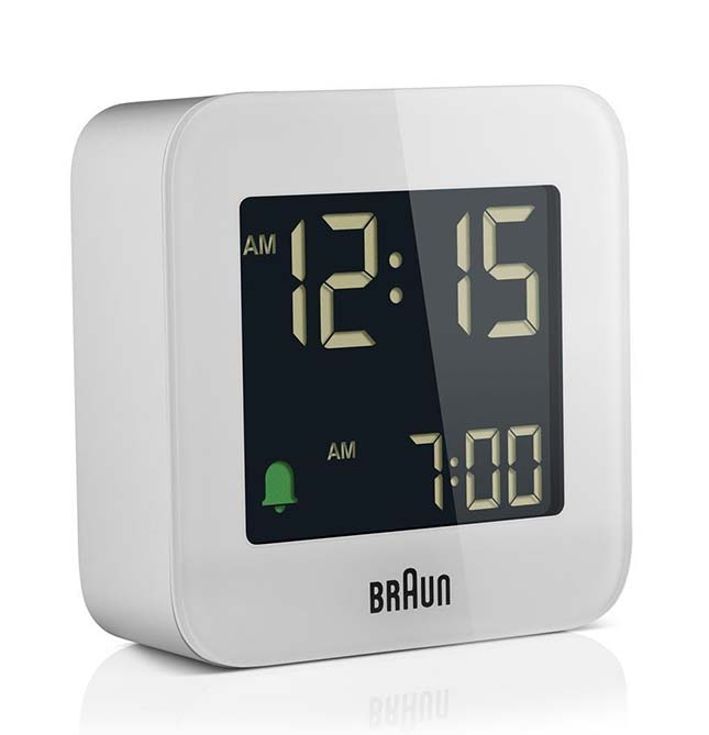 Zdobywca nagrody Red Dot Design Award na rok 2020. BC08 to krok dalej od klasycznego cyfrowego zegara podróżnego BNC008, ulepszone funkcje i produkt są bezpośrednią odpowiedzią na opinie i doświadczenia klientów.BC08 posiada alarm dźwiękowy crescendo, funkcję drzemki i podświetlenia oraz wyświetlacz LCD z 12- i 24-godzinnymi ustawieniami, z których wszystkie poprawiają funkcjonalność tego zegara. Lekka i kompaktowa konstrukcja (szer. 5,8 cm x wys. 5,8 cm x głęb. 2,0 cm) sprawia, że BC08 jest idealnym zegarem podróżnym. Projekt, który odzwierciedla zasady firmy Braun polegające na spójności, prostocie i przejrzystości projektu.