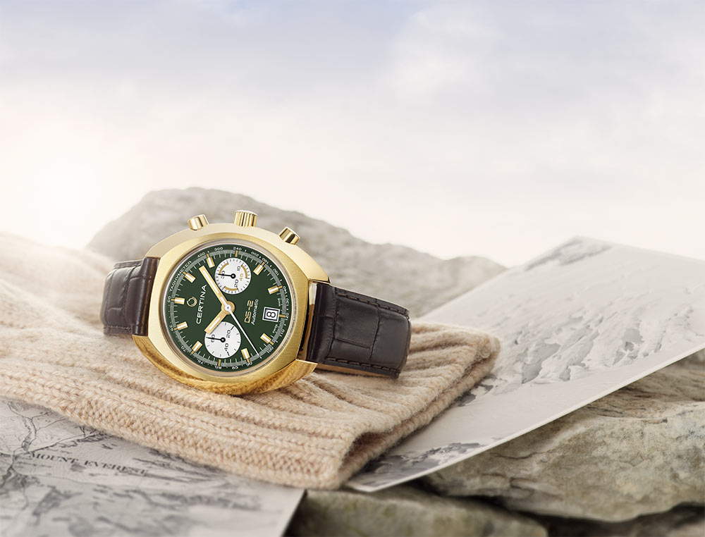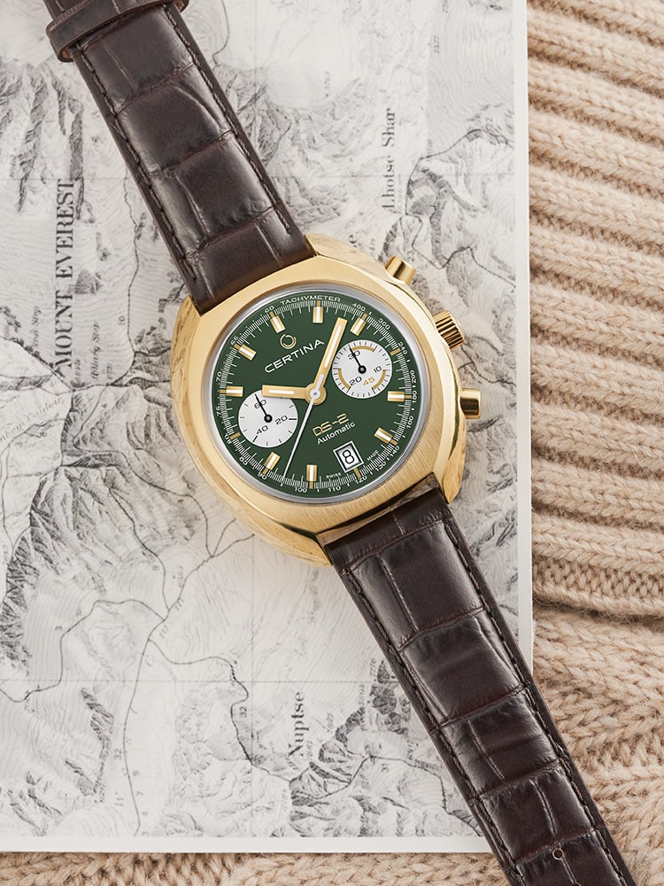 Marka zegarmistrzowska Certina prezentuje stylowy męski zegarek Certina DS-2 Chronograph Automatic C0244623609100 w wersji vintage. Szwajcarski zegarek idący ze sportowym duchem to idealna propozycja dla Panów preferujących styl retro i tradycje zegarmistrzowskie. Ten automatyczny chronograf jest wspomnieniem swojego poprzednika z lat 70.
