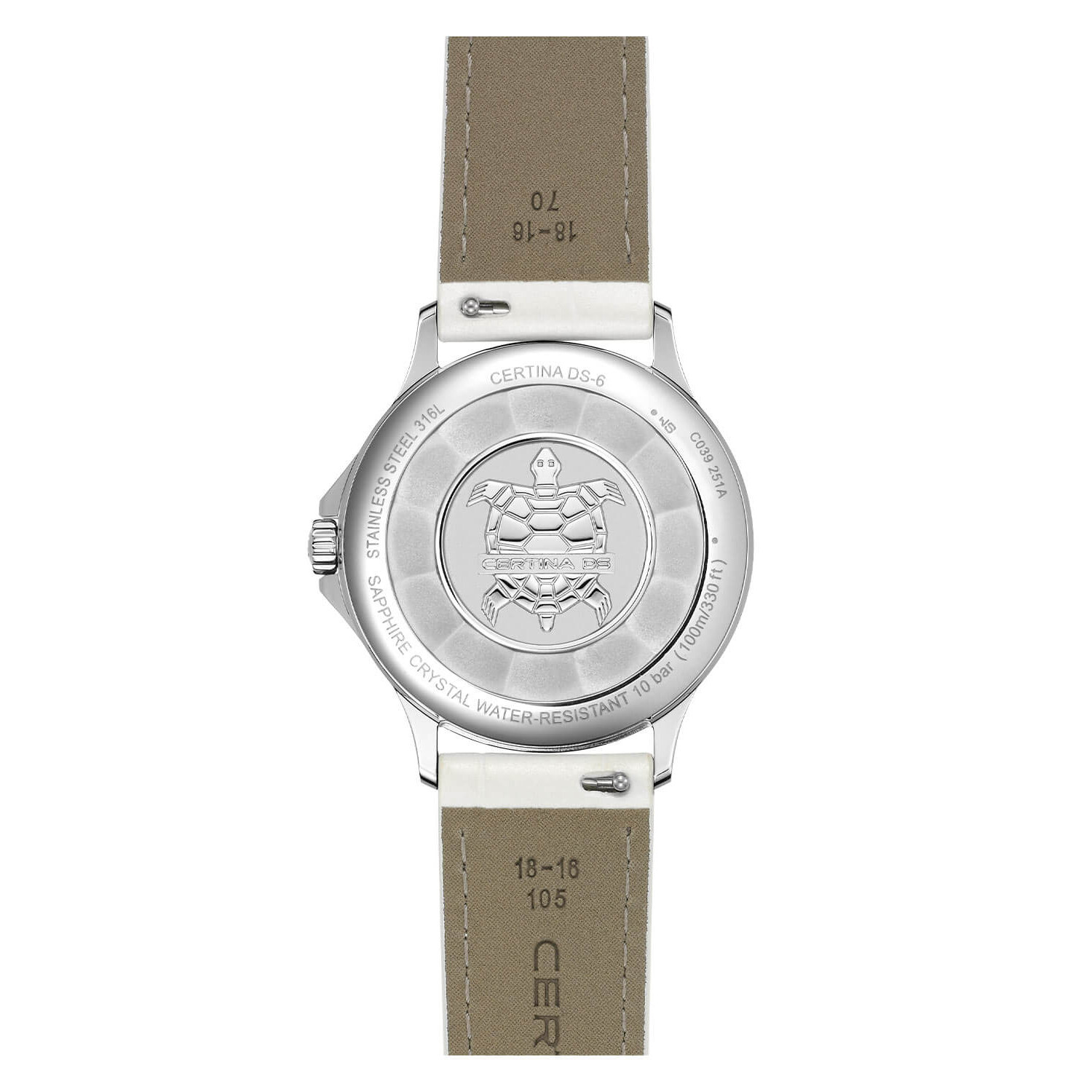 Materiały najwyższej klasy gwarantują wytrzymałość i piękno tego modelu. Solidna koperta ze stali szlachetnej 316L w srebrzystym odcieniu o średnicy 35 mm zachowuje blask i odporność na zarysowania, chroniąc subtelny mechanizm w środku. Tarczę osłania szafirowe szkło – niezwykle twarde i odporne na zarysowania – dzięki czemu zegarek na długo zachowa nieskazitelny wygląd. Wodoszczelność na poziomie 100 metrów (10 ATM) sprawia, że modelowi DS 6 niestraszne są przypadkowe zachlapania, a nawet zanurzenie w wodzie podczas codziennych aktywności. Całości dopełnia biały pasek wykonany z naturalnej skóry, miękki i elegancki – ten zegarek Certina na pasku skórzanym nie tylko świetnie wygląda, ale też zapewnia komfort noszenia przez cały dzień. Biały kolor paska dodaje świeżości i podkreśla uniwersalny charakter czasomierza, który z łatwością dopasuje się do niemal każdej stylizacji.