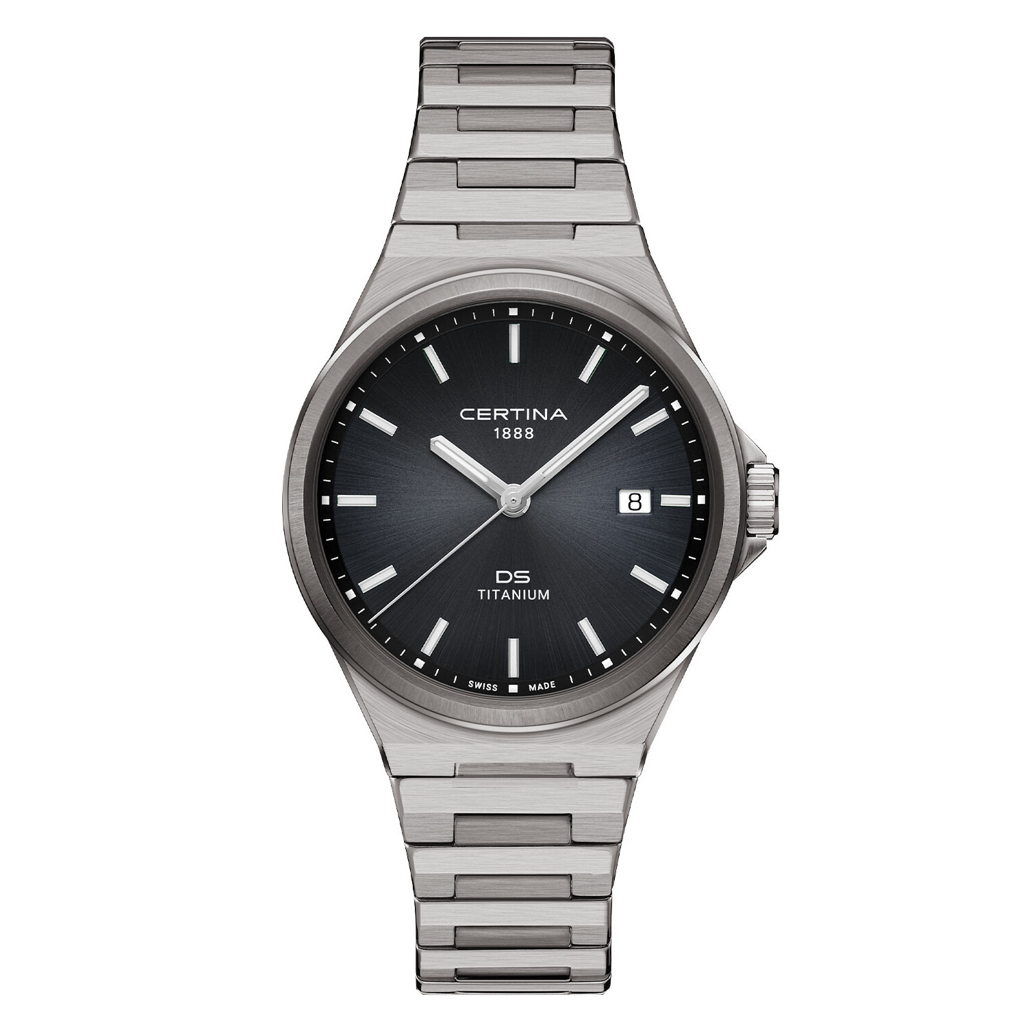 Atrakcyjny szczegół stanowi estetyczna czarna tarcza. Stalowe indeksy i wskazówki gwarantują czytelność, która dzięki szwajcarskiej powłoce świetlnej Super-LumiNova® pozostanie zachowana także w ciemności. Minimalistyczny datownik na godzinie trzeciej udostępnia wygodny dostęp do informacji o bieżącej dacie. Całość chroni odporne na zarysowania szkło szafirowe z powłoką antyrefleksyjną. Czasomierz z mechanizmem ETA Precidrive™ to nowy rozdział we współczesnym stylu sportowym oraz powiew świeżości w szeregach tradycyjnej linii zegarków sportowych Certina. Doskonały i stylowy dodatek w połączeniu ze szwajcarską precyzją to prezentowany, tytanowy zegarek Certina DS-7. Będzie on kompletnym uzupełnieniem garderoby.
