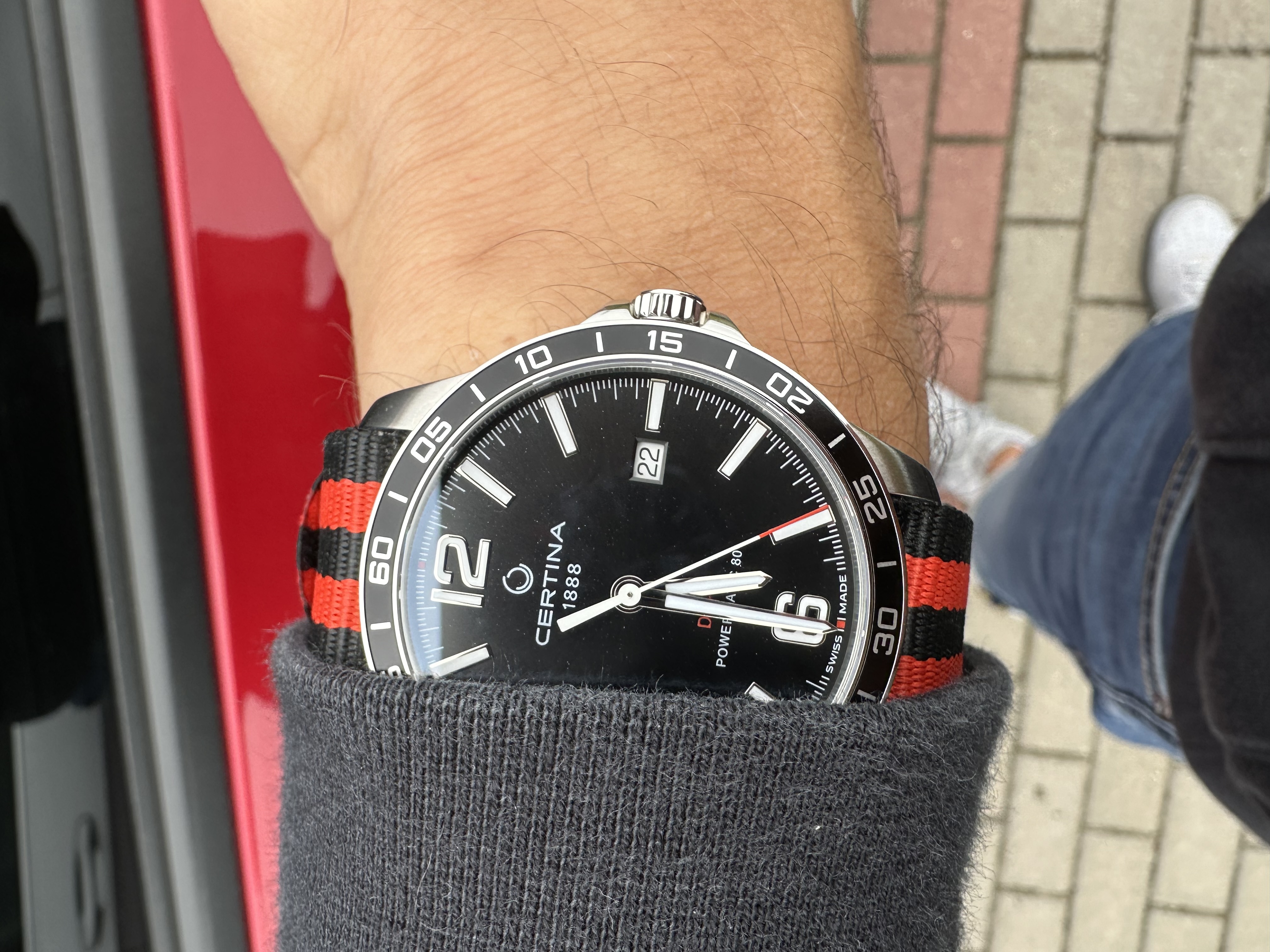 DS-8 to zabawa kolorem — czarna tarcza ozdobiona akcentami w kolorze białym i czerwonym. Gruba powłoka Super-LumiNova® na wskazówkach, cyfrach i indeksach godzin zapewnia optymalną czytelność wskazań, również w ciemności, a okienko datownika umieszczone na godzinie 3 perfekcyjnie uzupełnia tarczę. Ukryty wewnątrz koperty nowoczesny mechanizm automatyczny Powermatic 80.611 zapewnia niezawodną precyzję. Oprócz rezerwy chodu do 80 godzin zegarek jest wyposażony w sprężynę włosową zupełnie nowego typu, wykonaną ze stopu Nivachron™. Ten innowacyjny materiał został opracowany we współpracy ze Swatch Group, aby zwiększyć odporność zegarka na działanie pól magnetycznych. Certina jest obecnie jedną z pierwszych marek, które wykorzystały ten nowy materiał. Ponieważ bazą stopu jest tytan i krzem, sprężyna włosowa Swiss Made wykazuje również wysoką odporność na wahania temperatury i znakomitą wytrzymałość na uderzenia. Podsumowując, sześćdziesiąt lat po premierze systemu podwójnego zabezpieczenia Double Security, najnowsza wersja DS-8 wyznacza po raz kolejny nowy standard w dziedzinie niezawodności.