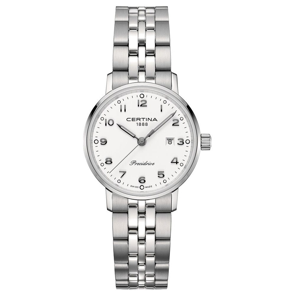 Zegarek damski Certina DS Caimano Lady Precidrive C035.210.11.012.00, tradycyjny czasomierz dla eleganckiej kobiety. Smukła koperta z cienkimi, wystającymi uszami idealnie komponuje się z paskiem skórzanym. Mimo że jest to klasyczny zegarek, to odznacza się imponującą odpornością na wstrząsy i wysoką klasą szczelności 10 bar/100 M, a to dzięki zastosowaniu systemu zabezpieczeń DS (Double Security). Wewnątrz zegarka pracuje najwyższej jakości mechanizm kwarcowy, na baterię Precidrive™.