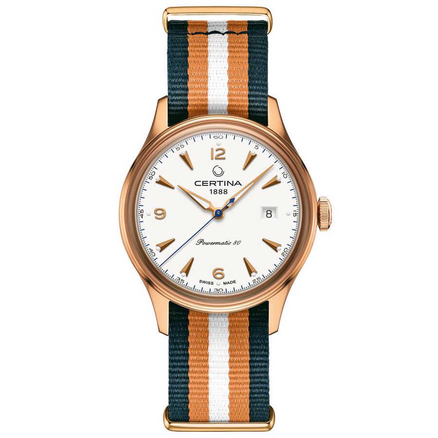 DS Powermatic 80 nawiązuje do swego, popularnego poprzednika — DS Chronograph Automatic. W przeciwieństwie do niego jednak posiada tarczę z trzema wskazaniami oraz kopertę o średnicy 40 mm wykonaną ze stali szlachetnej z wykończeniem PVD w kolorze różowego/żółtego złota. Szkło szafirowe zapewnia optymalny widok na cyferblat, a dodatkowo przywołuje na myśl wspomnienie o zabytkowych czasomierzach. Z rzemieślniczą precyzją dopracowane komponenty uwznioślają wrażenie stylu vintage: smukła, pozłacana wskazówka sekundowa oraz wskazówka minutowa i godzinowa pokryte są szwajcarską powłoką luminescencyjną Super-LumiNova®. Lekko wypukła tarcza nosi barwę lśniącej bieli. Pasek NATO w biało-niebiesko-brązowe prążki, który można wyjąć i wymienić w wybranym momencie dzięki systemowi szybkiej wymiany, jawi się jako modny i dynamiczny akcent.
