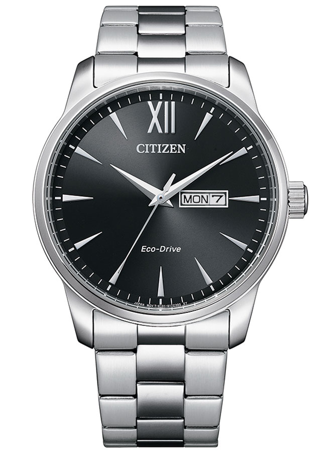 Citizen BM8550-81EC elegancki zegarek przewidziany dla mężczyzn. Klasyczna koperta ze stali szlachetnej o średnicy 42 mm, zamknięta mineralnym szkłem. Szara tarcza ozdobiona czytelnymi indeksami w kształcie grotu. Na godzinie trzeciej japoński producent umieścił rozbudowany datownik. Pokazuje on cyfrę dnia miesiąca i nazwę dnia tygodnia. Zaostrzone wskazówki dodają elegancji. Od spodu czasomierza znajduje się zakręcany dekiel, który uszczelnia całą konstrukcję do 10 barów/ 100 m, co pozwala na pływanie z zegarkiem. Citizen zastosował kultowy mechanizm Eco-Drive, który jest zasilany światłem, eliminując tym samym konieczność wymiany baterii. Jest to ekologiczne i ekonomiczne rozwiązanie, które jest cały czas rozwijane przez Citizena.