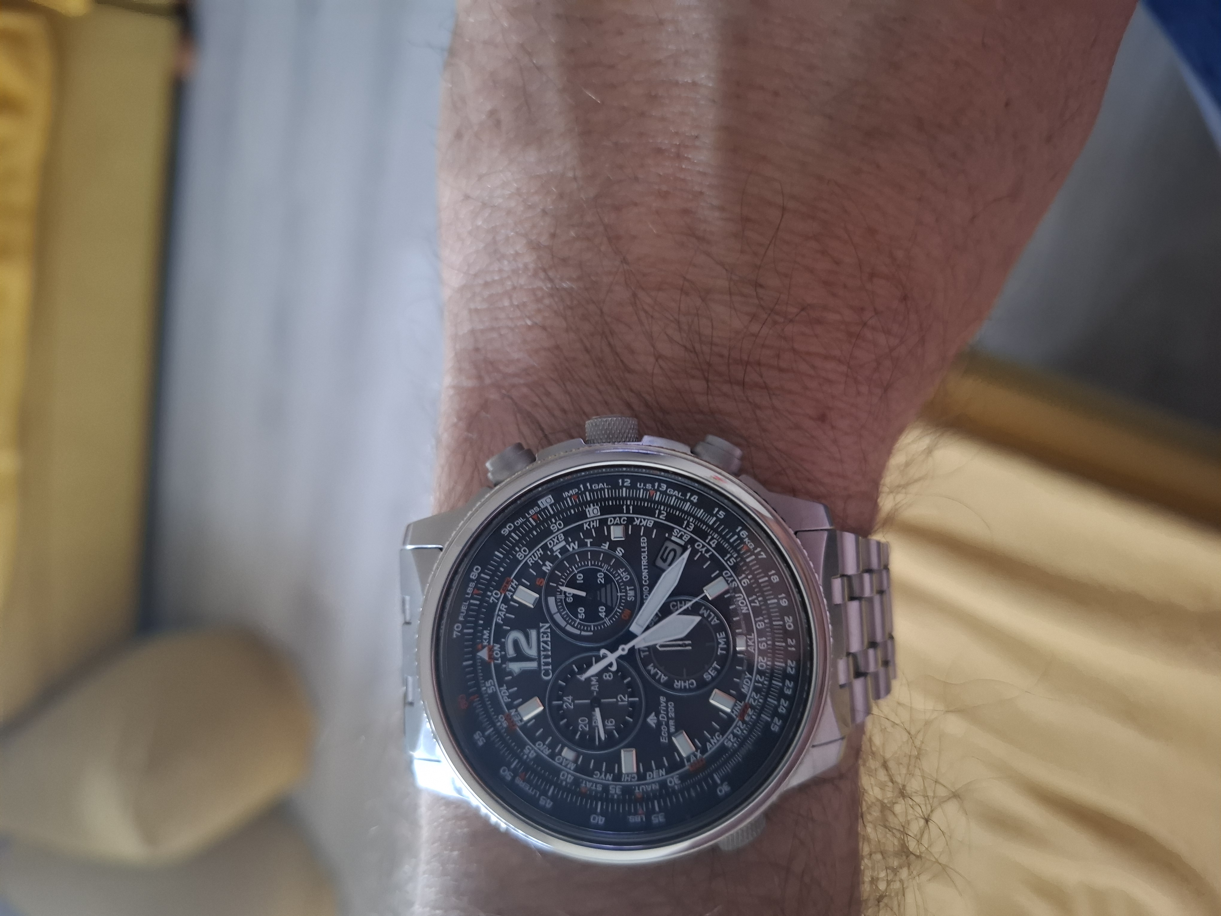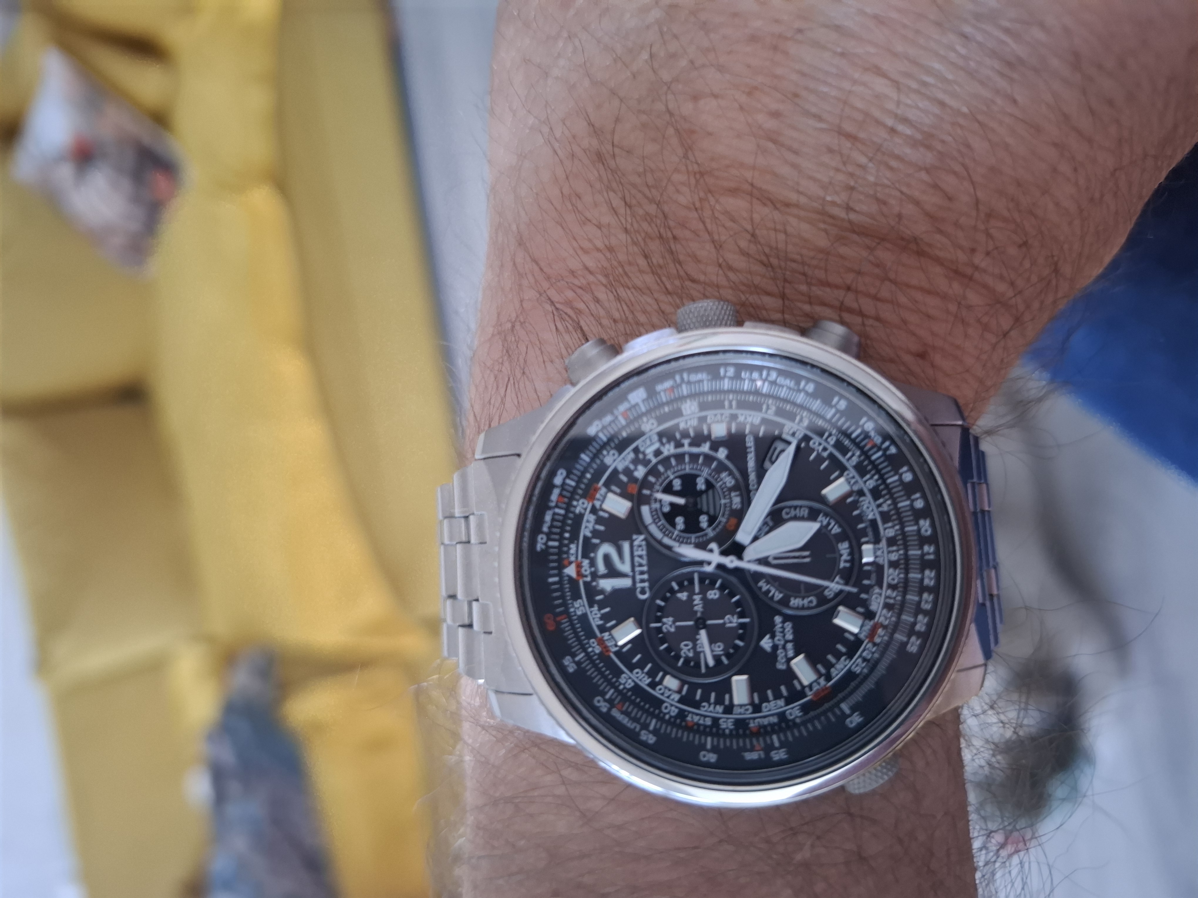 Zegarek Citizen Promaster SKY Radio Controlled posiada mechanizm Citizen E660, który posiada szereg przydatnych funkcji. Wieczny kalendarz, zawsze dokładny dzień tygodnia i cyfra dnia miesiąca, strefy czasowe, czyli można ustawić dokładny czas w 24 różnych miastach, alarm, czas w skali 24 godzinowej, wskaźnika naładowania akumulatora oraz chronograf.