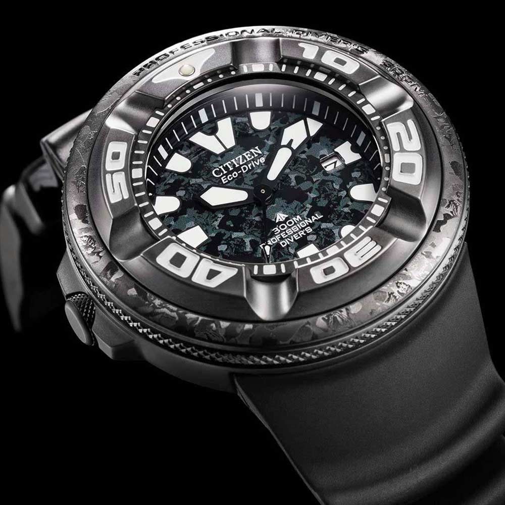 Trwała konstrukcja zyskała od fanów przydomek Ecozilla, łączący technologię Eco-Drive z Godzillą. Odporność na wodę do 300 metrów gwarantuje profesjonalne możliwości nurkowe, a czytelny szary cyferblat ozdobiony unikalnym wzorem maskującym, odważne lśniące wskazówki i znaczniki zapewniają gotowość do akcji. Zegarek jest wyposażony w trwały i ekologiczny czarny pasek z poliuretanu, stworzony z materiałów pochodzenia biomasy. Ten ikoniczny zegarek kolekcjonerski zasilany jest ekologicznie dzięki technologii Eco-Drive, która nigdy nie wymaga wymiany baterii. Klasa kalibru B873 dodaje do tego zegarka wyjątkowej jakości i niezawodności. Zegarek jest limitowany do 2500 sztuk na cały świat.