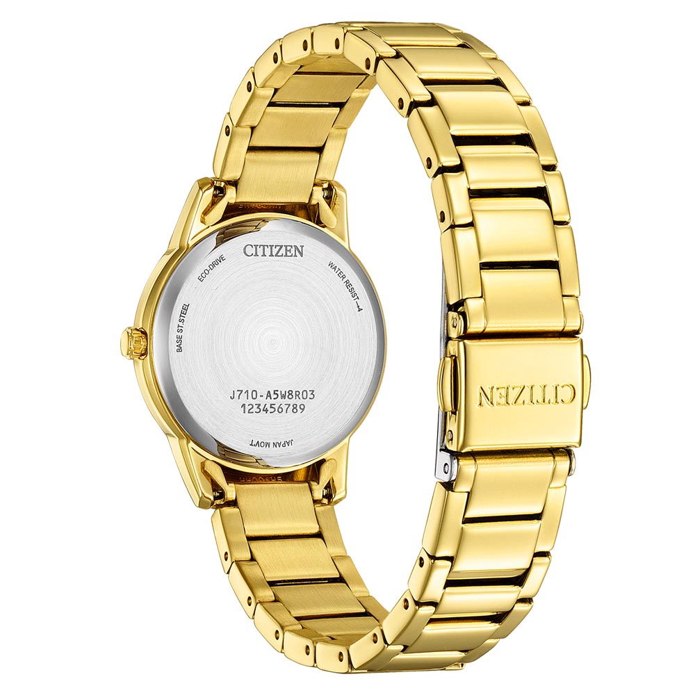 Citizen Ladies Modern Dress FE1242-78D to wyjątkowy damski zegarek, który wyróżnia się klasycznym designem i nowoczesną funkcjonalnością. Jego elegancja zaczyna się od smukłej, złoconej koperty 30 mm wykonanej ze stali nierdzewnej, która nadaje mu subtelny wygląd.
