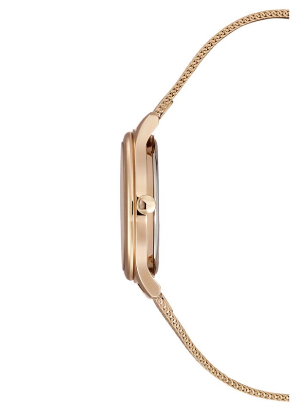 Złocony różowym złotem, zegarek damski Citizen Lady Collection EM0503-83X został wyposażony w wygodna w noszeniu bransoletę typu mesh. Jest ona lekka, a jej konstrukcja sprawia, że ręka oddycha. Czytelna tarcza w kolorze złotym posiada delikatny wzór nadający zegarkowi głębi. Zegarek posiada mechanizm Eco-Drive zasilany dowolnym źródłem światła.
