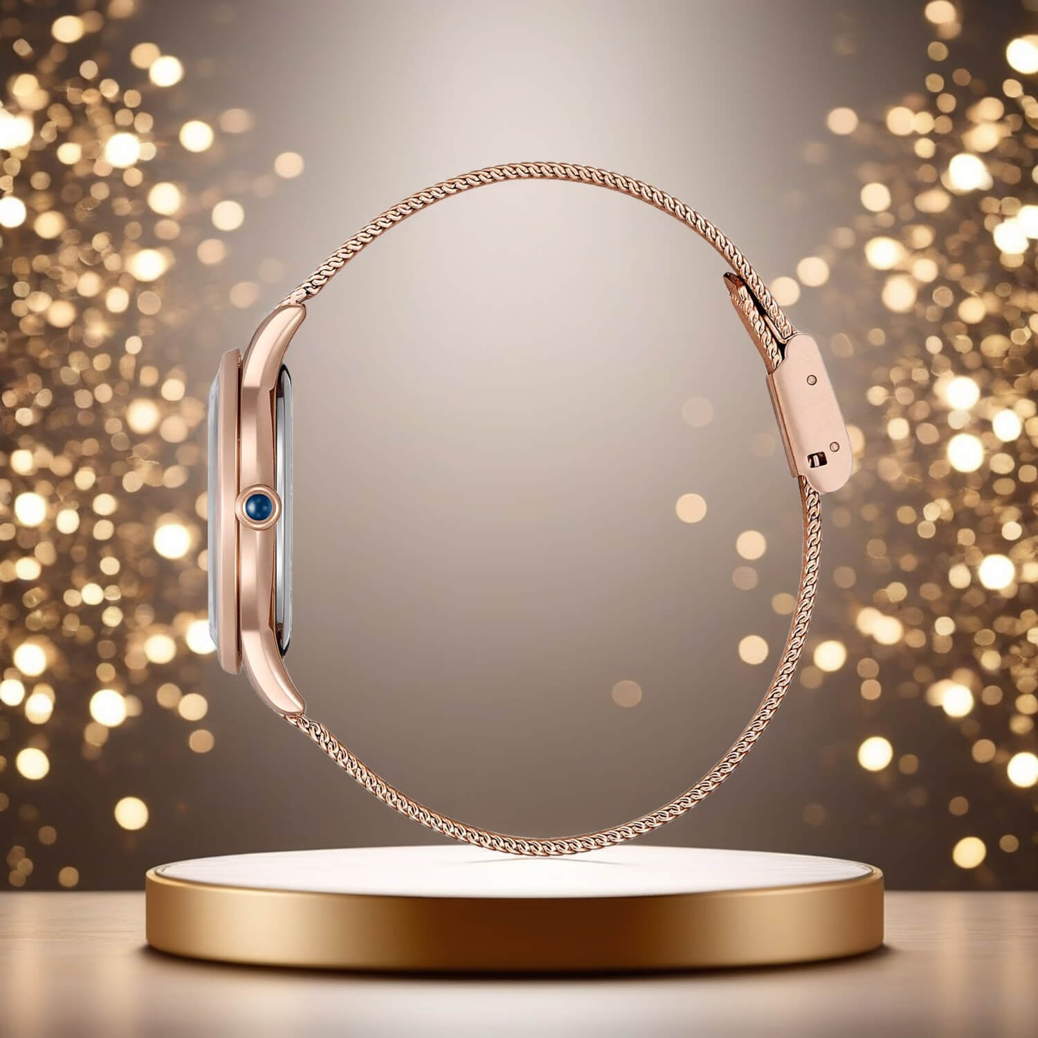Bransoleta ma strukturę siatkową (tzw. „mesh”), co sprawia, że jest lekka i wygodna w noszeniu, a jednocześnie dodaje całości wyrafinowanego, współczesnego wyglądu. Model ten doskonale sprawdzi się jako stylowy dodatek zarówno na co dzień, jak i na specjalne okazje, łącząc w sobie nowoczesną technologię i klasyczną elegancję.