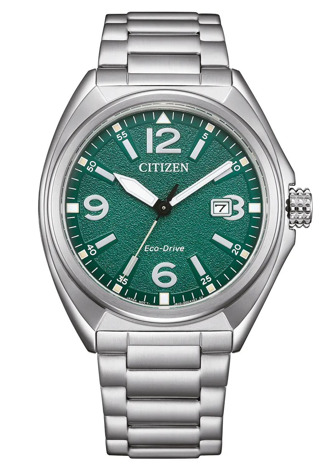 Citizen Military AW1571-76X to zegarek zaprojektowany z myślą o miłośnikach sportu i outdoorowych wyzwań. Wyposażony w mechanizm solarny Eco-Drive, nie potrzebuje wymiany baterii, ponieważ ładuje się dzięki naturalnemu światłu, co czyni go praktycznym i ekologicznym rozwiązaniem. Zielona matowa tarcza wyróżnia się nierówną teksturą, która nadaje jej charakterystyczny, surowy wygląd. Dzięki wyraźnym arabskim indeksom oraz białym akcentom zegarek jest wyjątkowo czytelny w każdych warunkach oświetleniowych. Koperta o średnicy 40 mm przybiera techniczny, kanciasty kształt, co podkreśla militarny charakter zegarka i zapewnia dodatkową wytrzymałość. Stalowa bransoleta z systemem otwierania za pomocą przycisków jest nie tylko wytrzymała, ale także łatwa w dopasowaniu do nadgarstka. Dodatkowo wodoodporność na poziomie 100 m (10 bar) sprawia, że zegarek jest odporny na zanurzenie i wilgoć, co czyni go idealnym wyborem dla osób aktywnych, ceniących funkcjonalność i niezawodność.