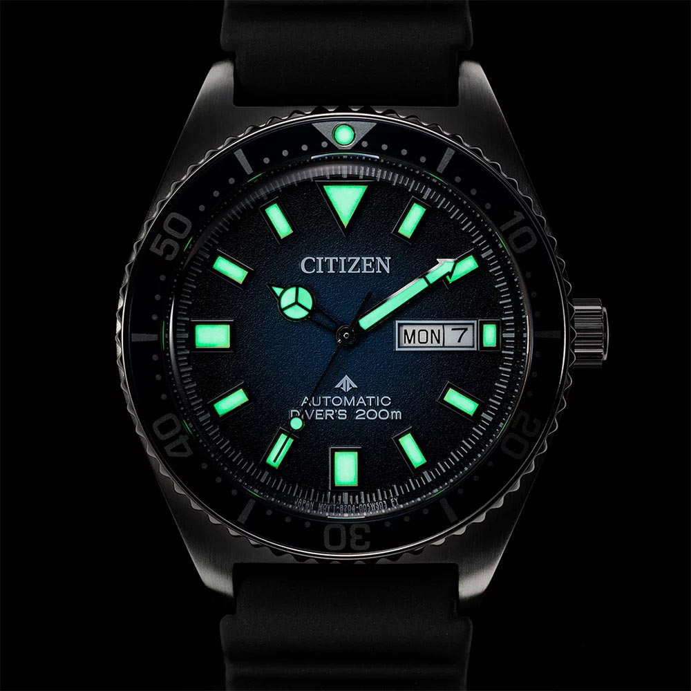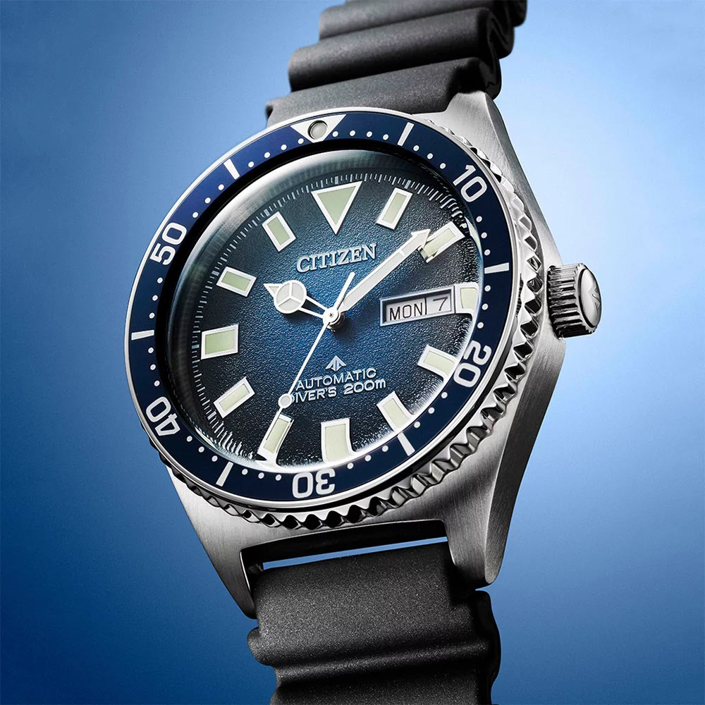 Zegarek Citizen NY0129-07LE wskazuje godzinę dwiema czytelnymi wskazówkami wypełnionymi świecącą lumą oraz smukłą wskazówką sekundową. Dookoła tarczy umieszczone zostały duże czytelne indeksy, które również świecą w ciemności. Marka Citizen zadbała o czytelność tarczy w każdych warunkach. Godzina trzecia to datownik day-date, który informuje o aktualnym dniu tygodnia oraz miesiąca. Godzina dwunasta to dumne logo marki Citizen, a szósta informuje o mechanizmie i odporności zegarka na wodę. Niebieska tarcza przykryta została twardym szkłem mineralnym. W zegarku umieszczony został japoński mechanizm automatyczny. Citizen Miyota to werk napędzany ruchem nadgarstka. Marka Citizen zdążyła już przyzwyczaić wszystkich swoich fanów do dokładnej pracy swoich czasomierzy. Prezentowany model nie jest wyjątkiem, dodatkowo gwarantuje rezerwę chodu do około 42 godzin.