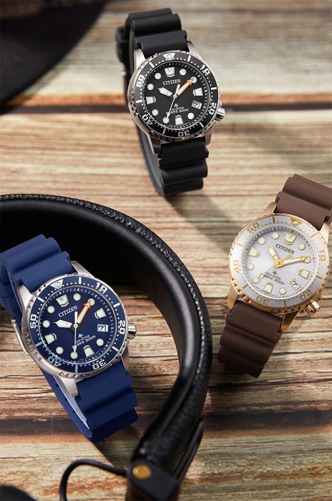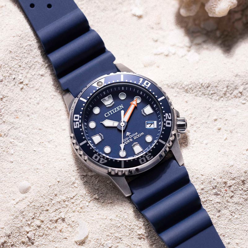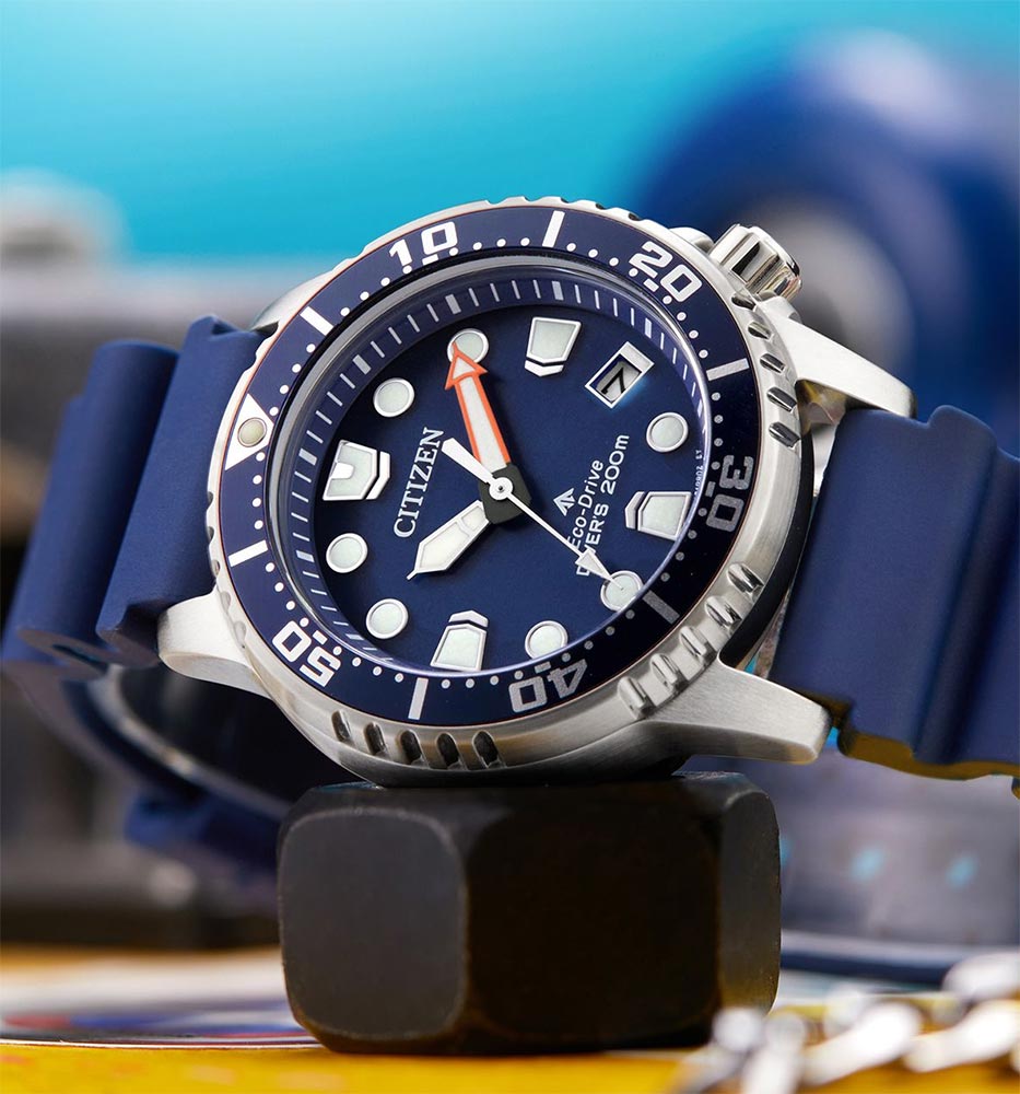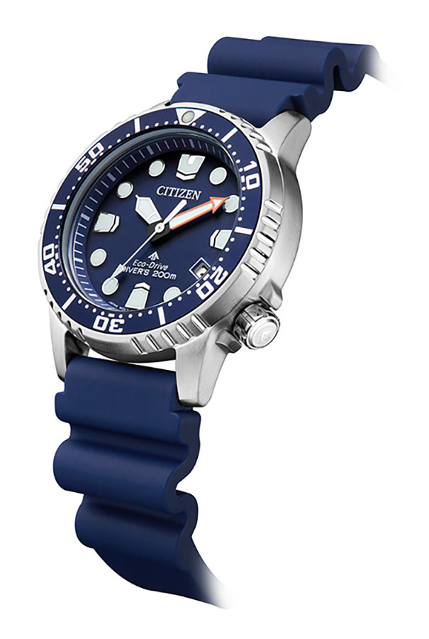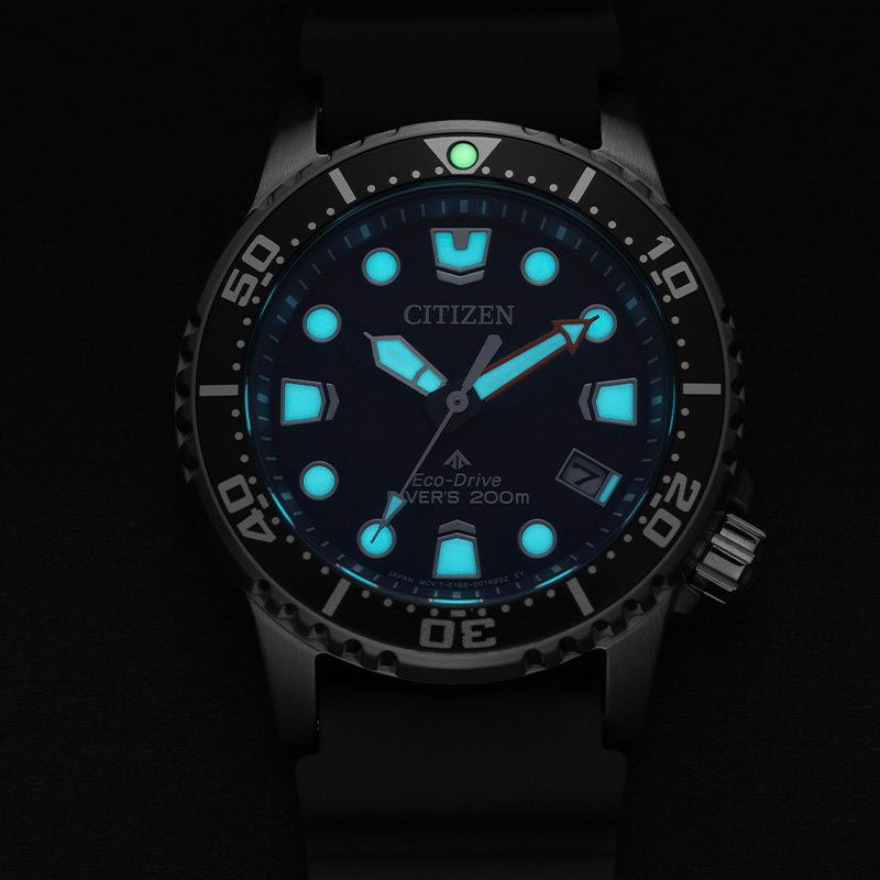 Wodoodporny, gumowy pasek o specjalnym kształcie zapewnia swobodny przepływ wody przez nadgarstek i nie przeszkadza podczas nurkowania. Bardzo gruba warstwa substancji luminescencyjnej na wskazówkach i indeksach zapewnia widoczność w ciemności i pod wodą. Niezawodny i przyjazny dla środowiska mechanizm solarny Eco-Drive sprawia, że wymiana baterii nie jest już konieczna. Ponadto zegarek solarny Citizen Promaster wygeneruje energię niezbędną do zasilania nawet przy słabym oświetleniu, a w całkowitej ciemności będzie działać nawet przez 6 miesięcy.